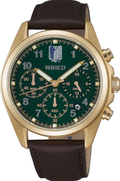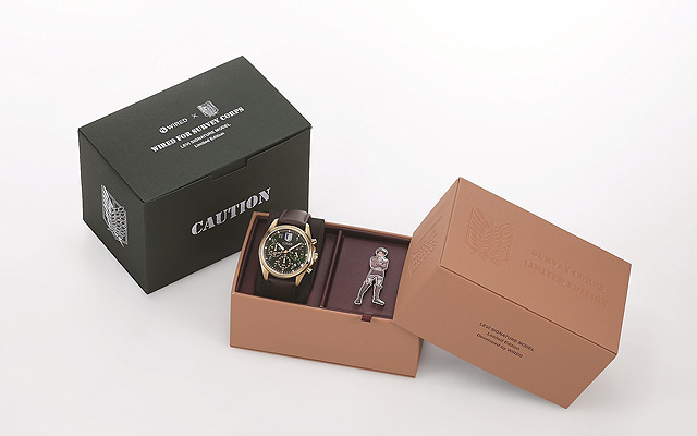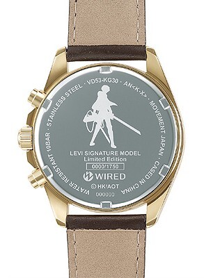 擁有強韌意志力及非凡行動力的故事主人公艾倫(Eren),由於目睹母親遭巨人吞食,從小便立志要加入調查兵團,立誓要驅逐所有巨人,利用覺醒的巨人之力,協助兵團抗爭巨人的冒險追夢精神令人敬佩。此次「AY8007X1」進擊的巨人艾倫聯名款,外觀上將艾倫充滿理想的精神融入錶款中,深藍色的錶盤,表現出艾倫對牆外世界寬闊藍天的渴望;巧妙搭配調查兵團服裝元素的亮棕色錶帶,展現出主角氣勢。背刻是艾倫誓言復仇,義無反顧衝向巨人出手攻擊的剪影,側面刻有艾倫專屬的「Eren Signature Model」經典字樣,錶款整體呈現出精悍的印象,搭配簡約的三針,彷彿艾倫俐落揮刀,整體有型設計,值得巨人迷們展開捕捉巨人作戰