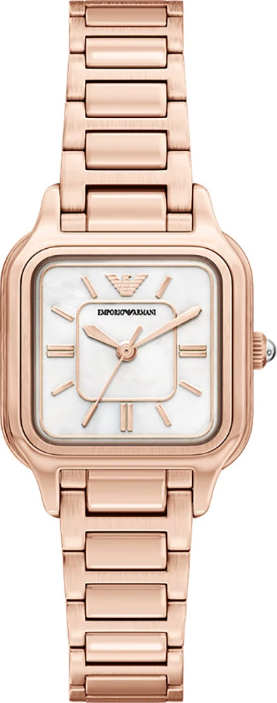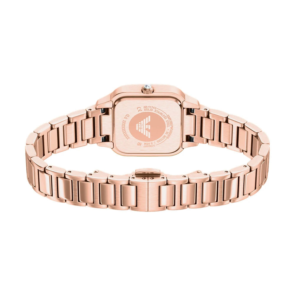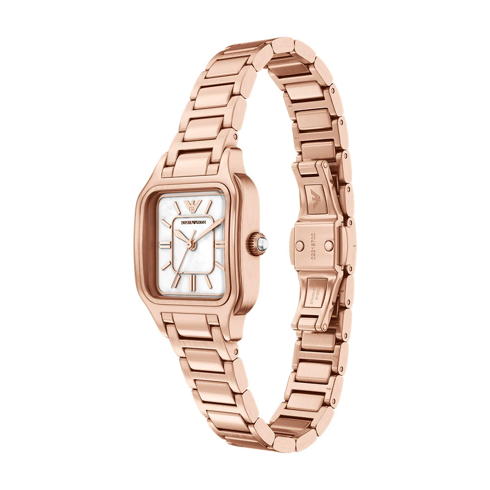 萬年鐘錶 - ARMANI 優雅小巧玫瑰金貝殼面盤方形女錶 AR11743 錶徑26MM