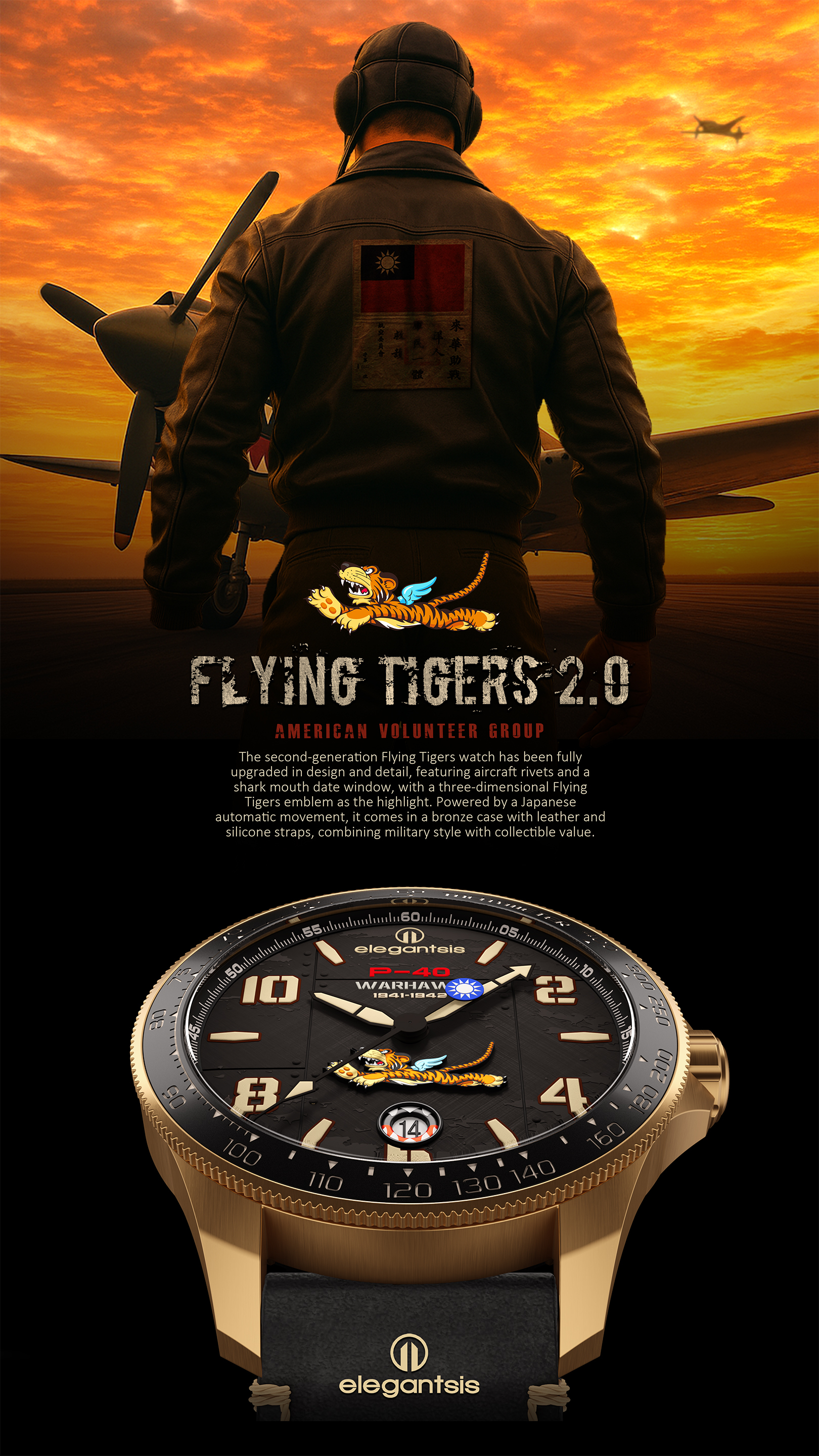 並特別訂製 P-40 WARHAWK 戰鷹造型自動陀,