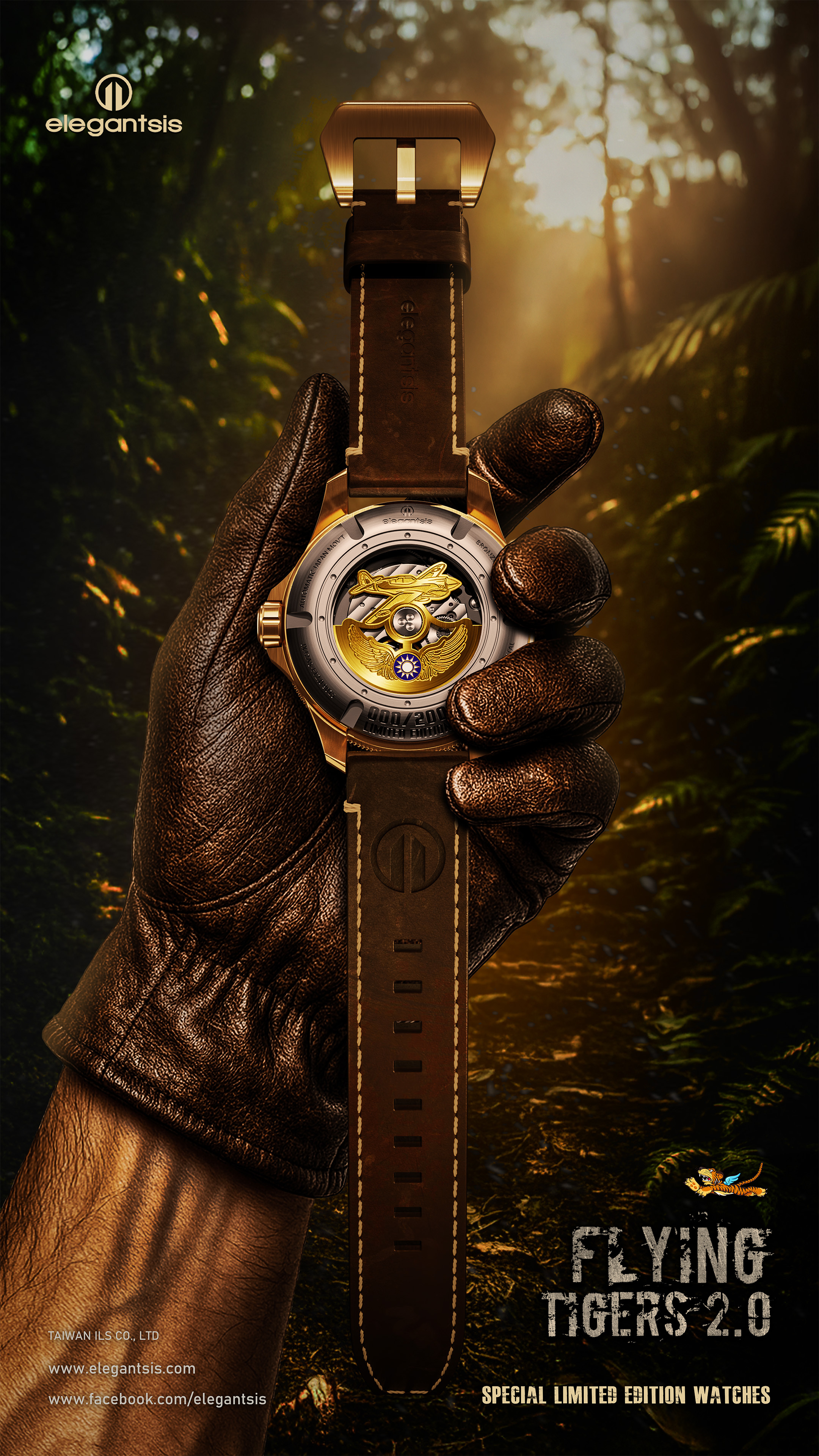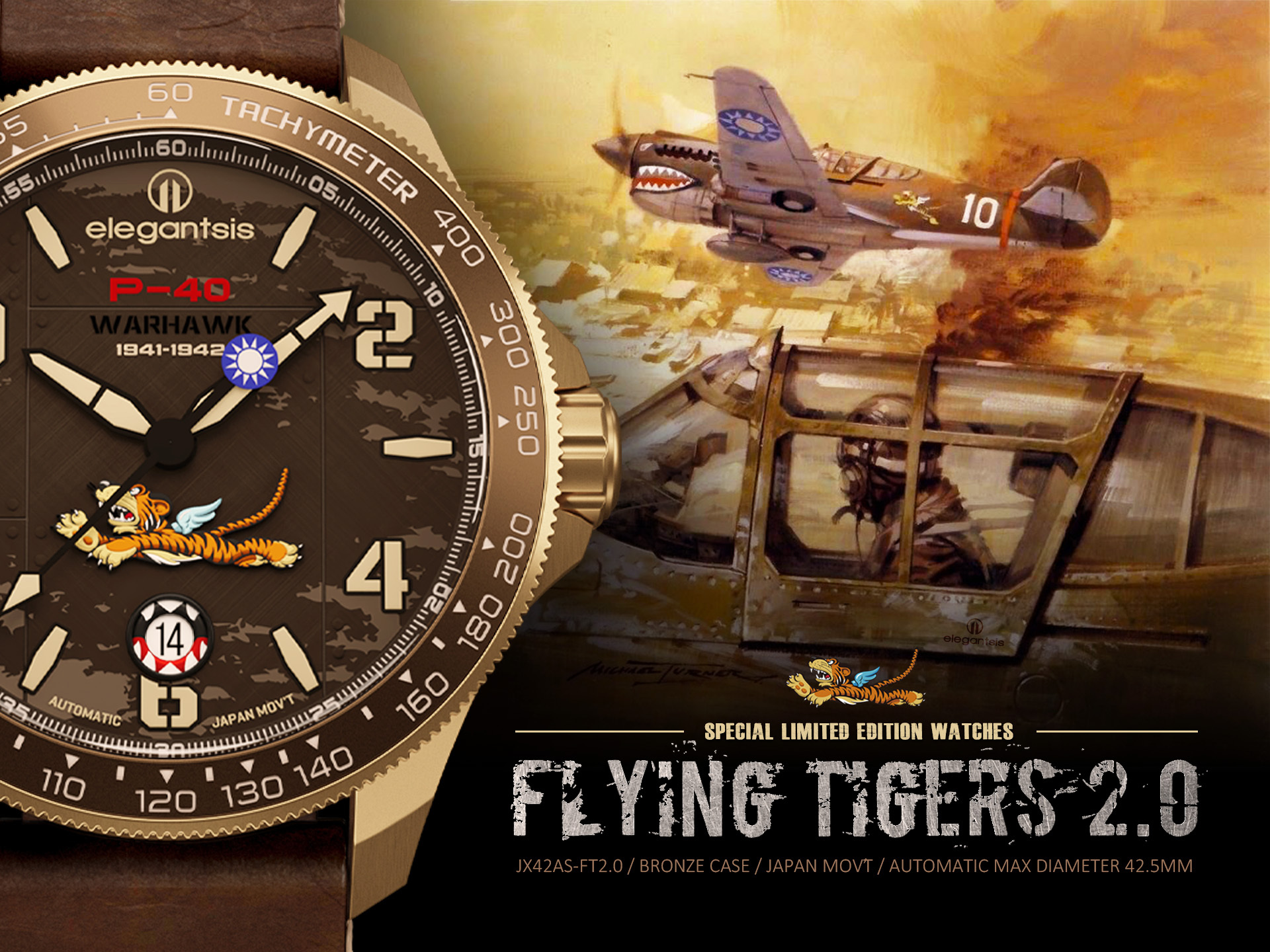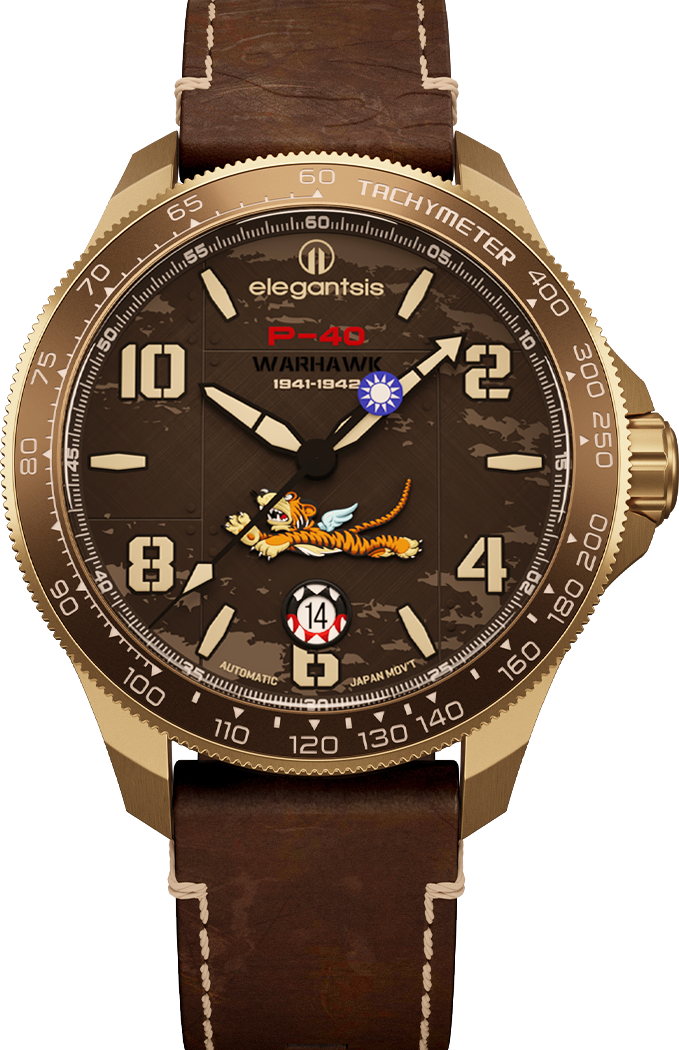 萬年鐘錶 - elegantsis 愛樂時 2.0飛虎隊青銅錶殼限量機械腕錶-咖啡色 ELJX42AS-FT2.0-9B03LC 錶徑42.5MM
