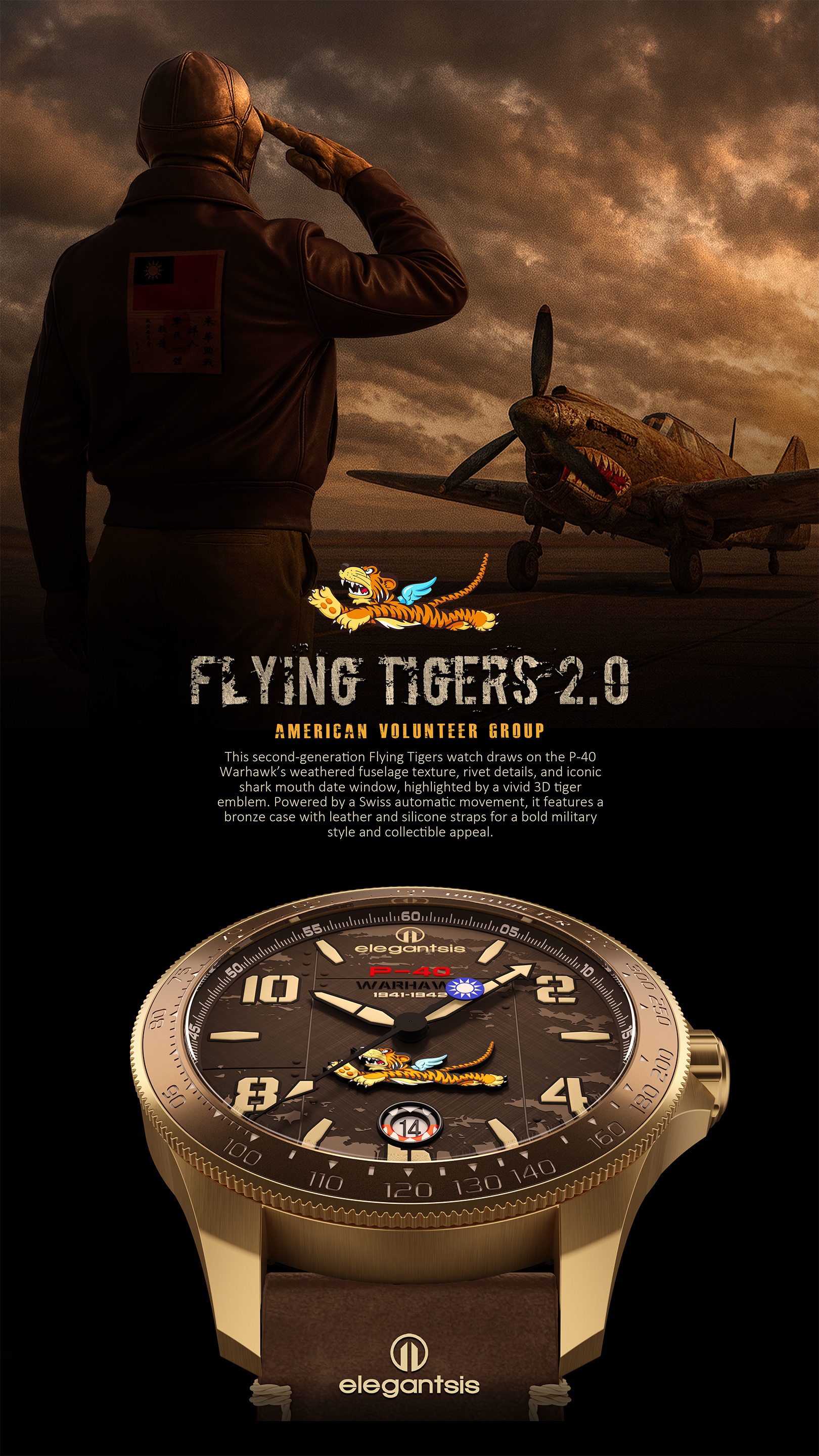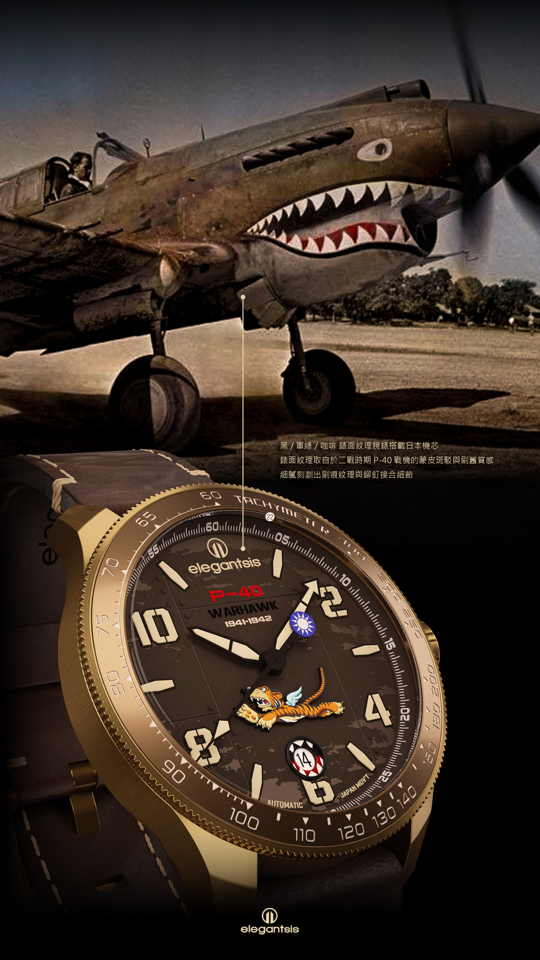 並特別訂製 P-40 WARHAWK 戰鷹造型自動陀,