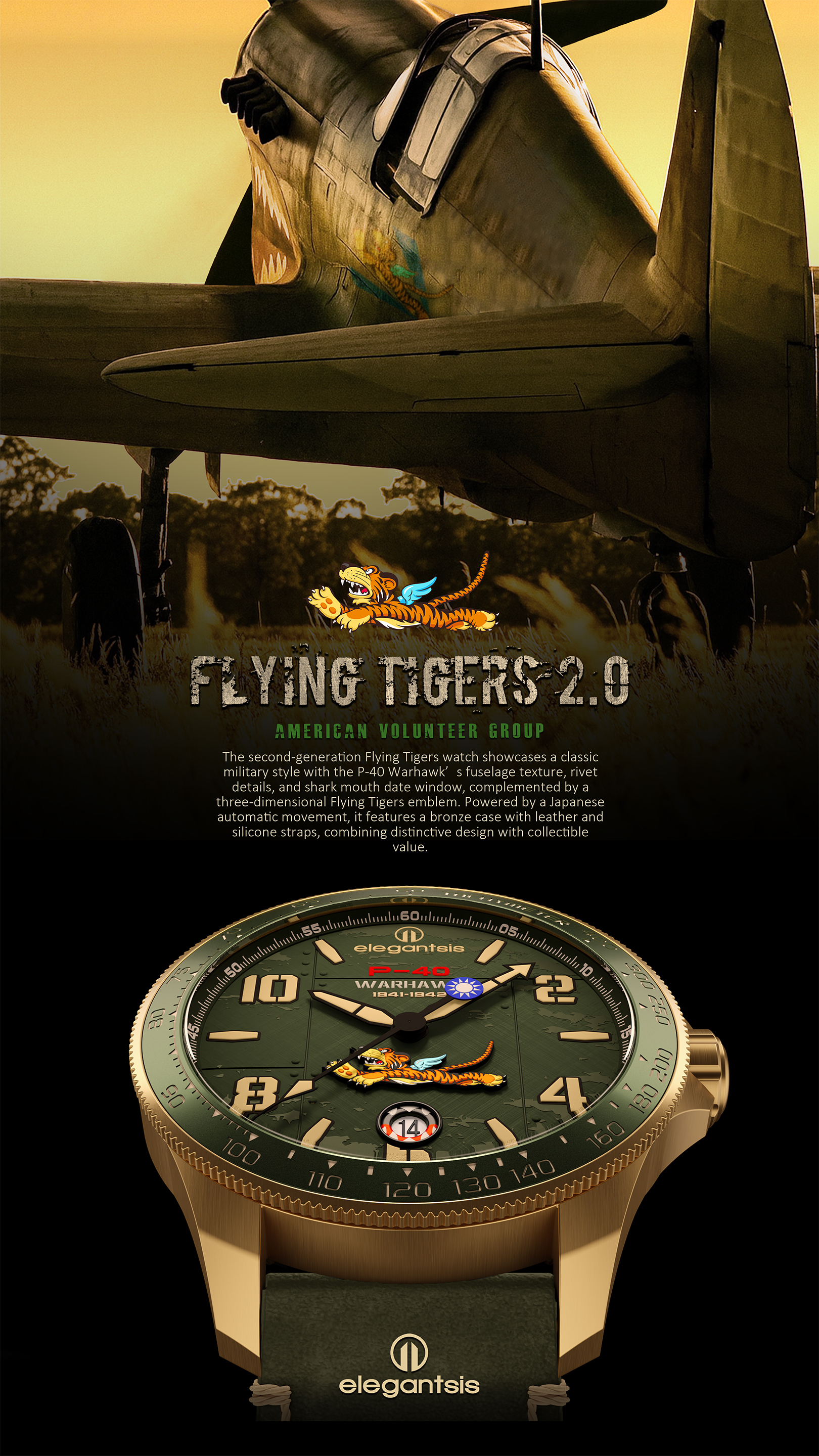 並特別訂製 P-40 WARHAWK 戰鷹造型自動陀,