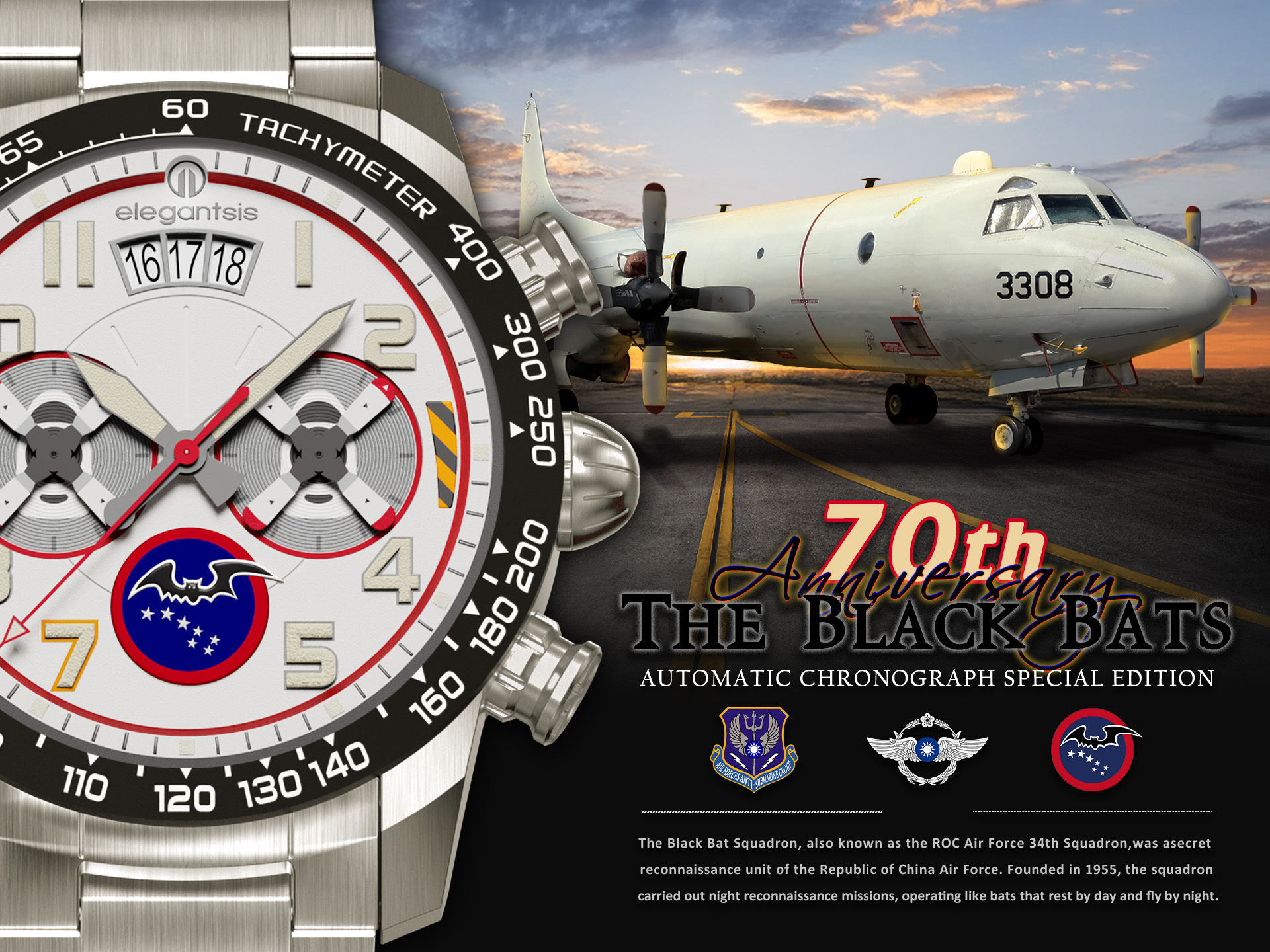 黑蝙蝠白色自動機械款黑蝙蝠34中隊為中華民國空軍秘密偵察部隊(前空軍34中隊)的別稱,此中隊成立於西元1955年,同時因為其進行夜間偵察任務的情形,就像是晝伏夜出蝙蝠一樣,所以也選擇了黑蝙蝠作為隊徽象徵。此中隊專門負責的任務,幾乎都是以情報蒐集、救濟物資空投或是空降情報員等重要機密任務。