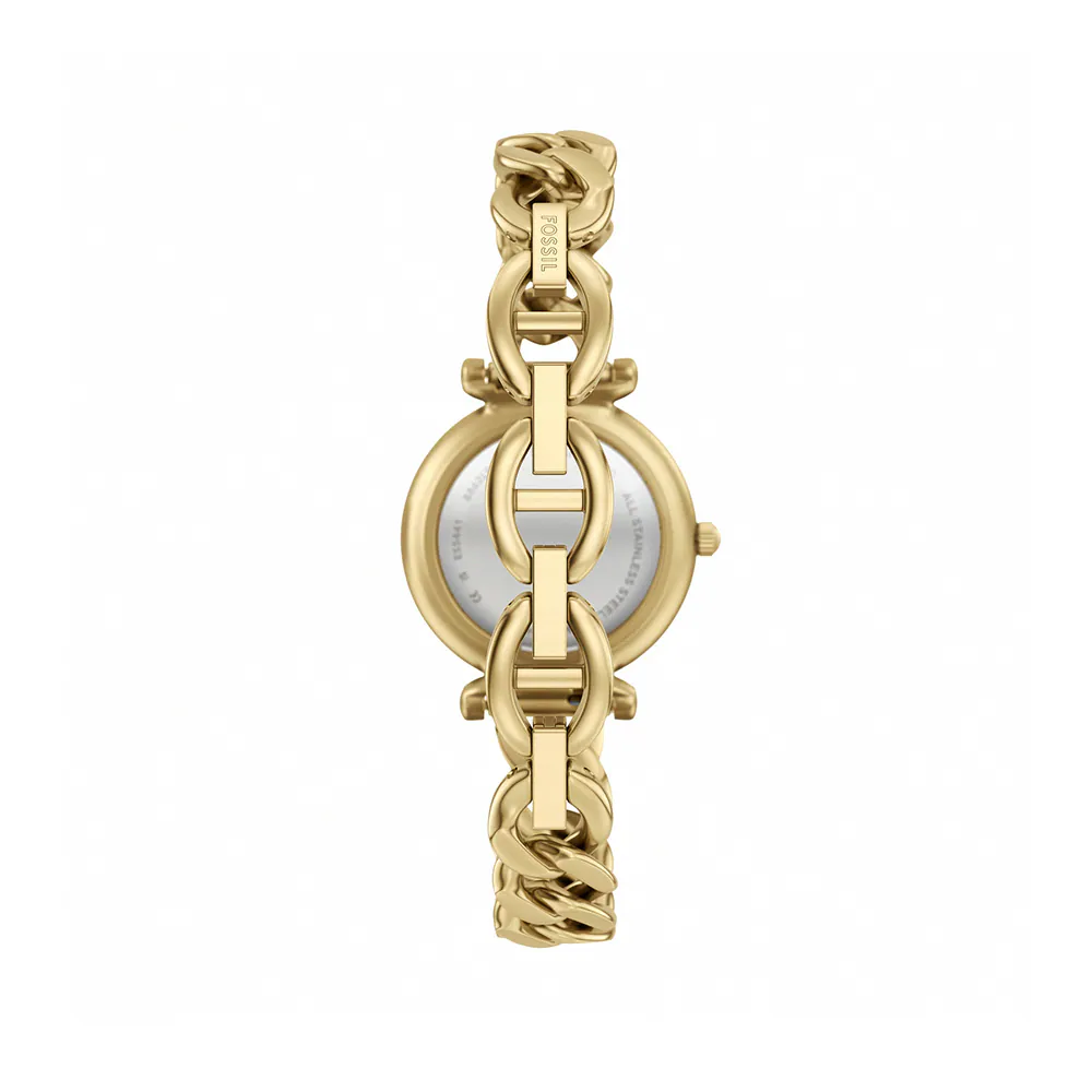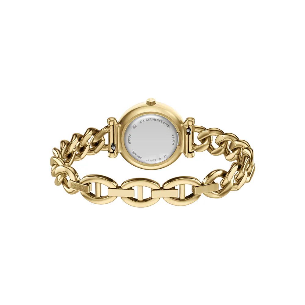 萬年鐘錶 - Fossil Carlie mini 優雅金綠面不鏽鋼手鍊造型女錶 ES5441 錶徑28MM