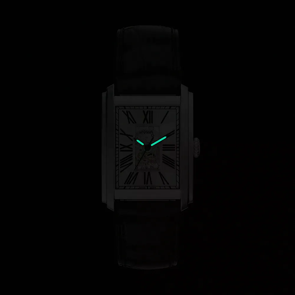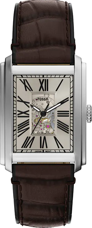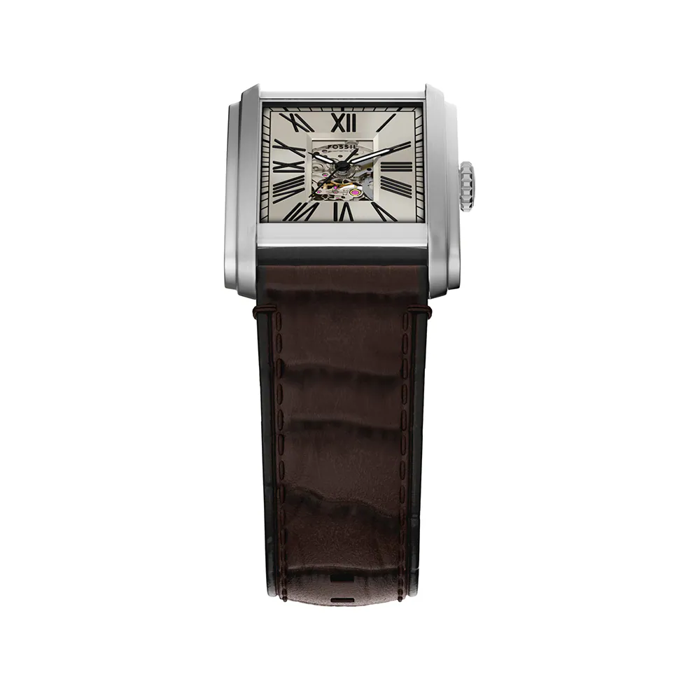 萬年鐘錶 - Fossil 方型時尚羅馬時標機械皮革款男錶 ME3272 錶徑30MM