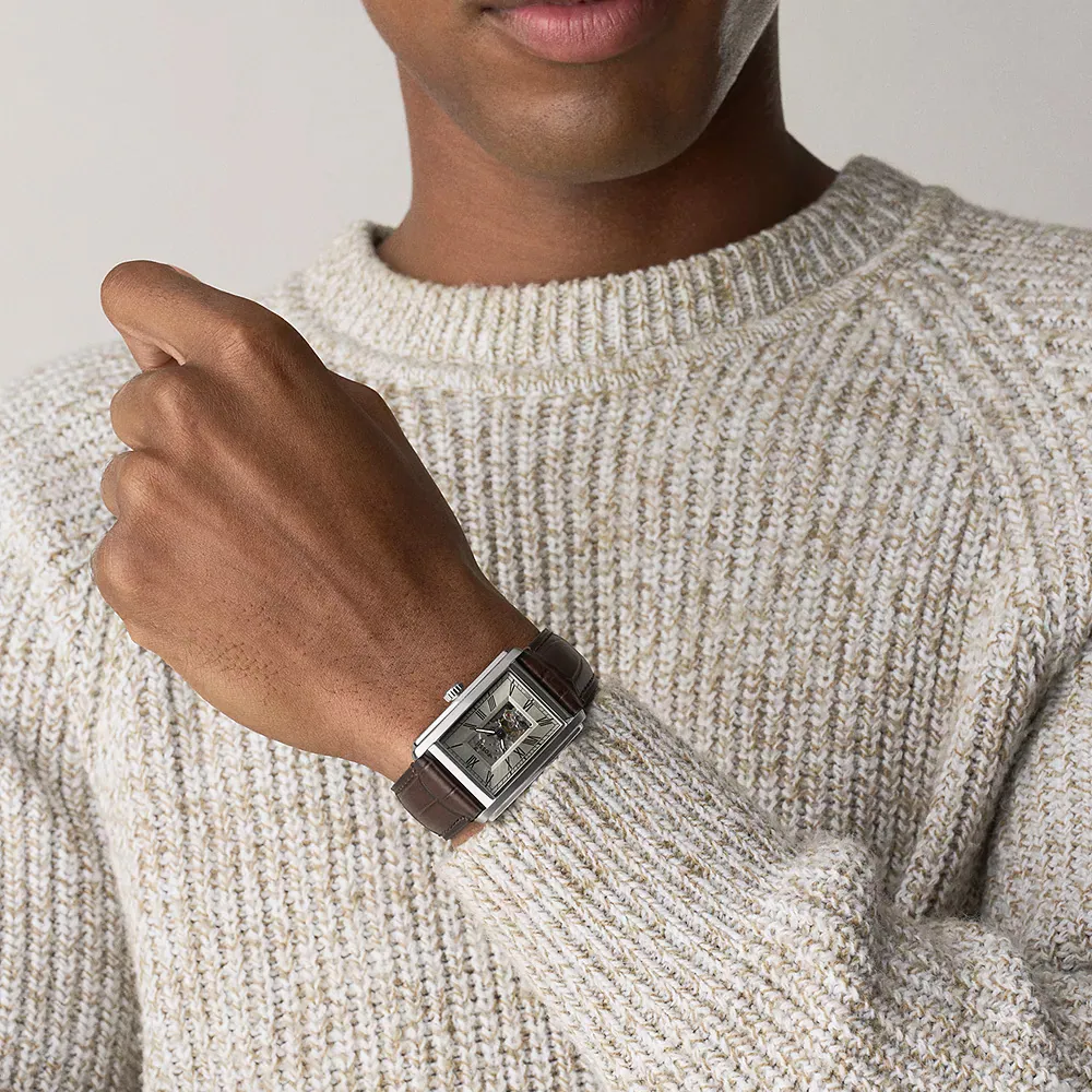 Carraway 是一款即時經典,經過深思熟慮的設計,細節無微不至。自動機芯透過透明底蓋和鏤空錶盤可見,增添了注重設計的功能性細節。這款腕錶配有經典的銀白色錶盤、貼合手腕的弧形錶殼,以及帶柔軟牛巴革內襯的海軍藍鱷魚紋壓花皮革錶帶,既永恆又舒適。