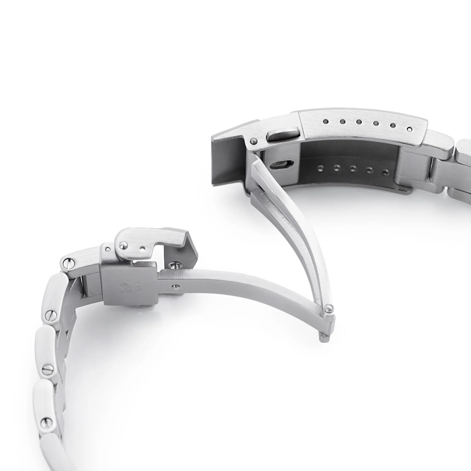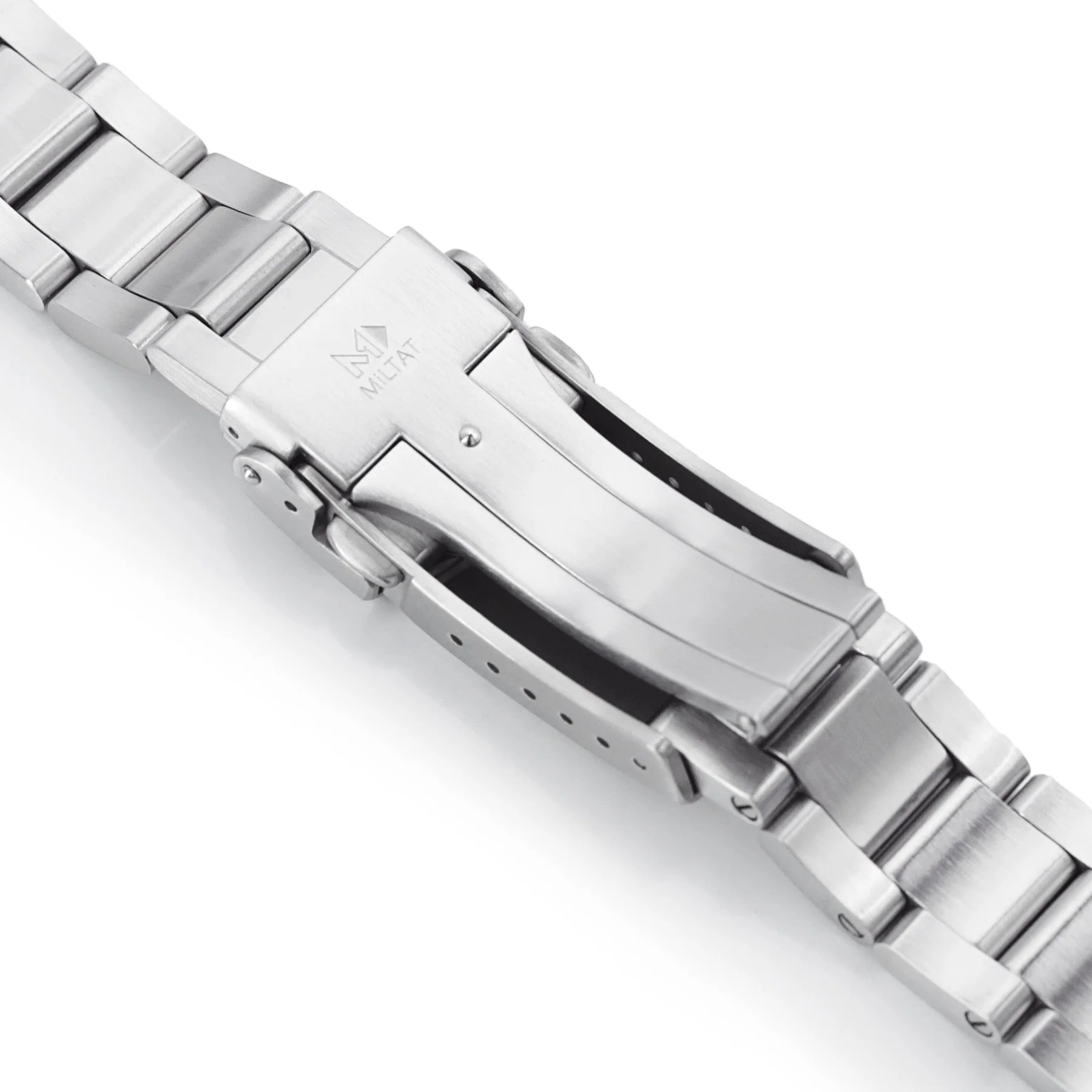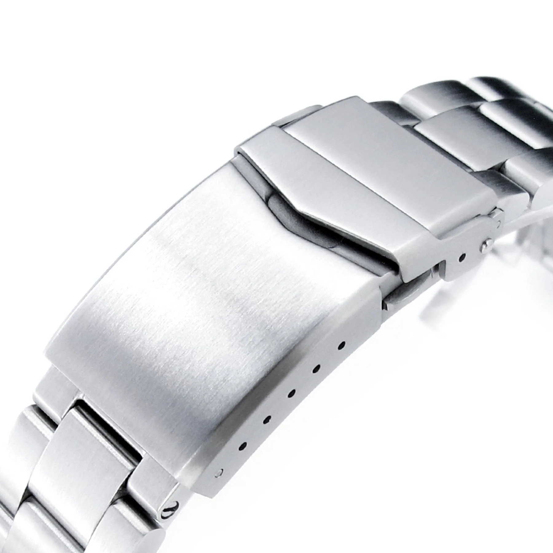 簡介 : 這款Super-O Boyer(博拿蠔式鋼錶帶)代用錶帶是度身訂造給SEIKO 精工 5號運動型 5KX GMT 系列: SSK001, SSK003 和 SSK005 的手錶使用的,寬度從錶耳22mm斜下至18mm帶扣尺寸(設計考慮到可兼容您原廠的Seiko精工18mm扣子)。博拿蠔式鋼錶帶是一款升級版的蠔式錶帶,彎曲的帶頭是採用高級工藝技術塑造,使之變得更有立體感,三維效果顯而易見。全部選用316L不鏽鋼板材,錶帶長度調節由組裝螺絲構造,而不是廉價的薄針。 本產品附上直徑2.3mm不銹鋼彈簧棒一對,以便靈活裝拆的同時亦能保持其堅固性。