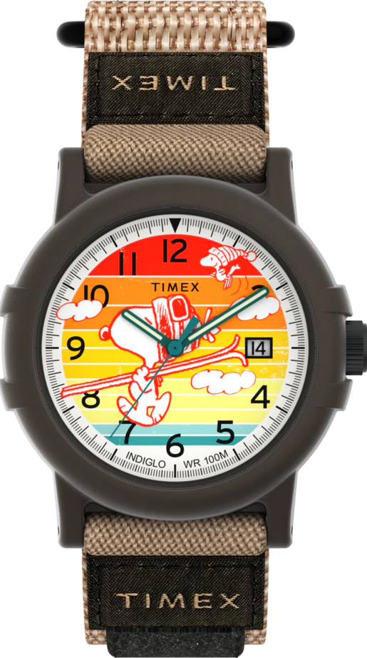 萬年鐘錶 - TIMEX x Peanuts 天美時 INDIGLO® 背光粉雪SNOOPY 耶誕氛圍魔鬼氈錶帶石英錶 TW4B34900 錶徑38MM