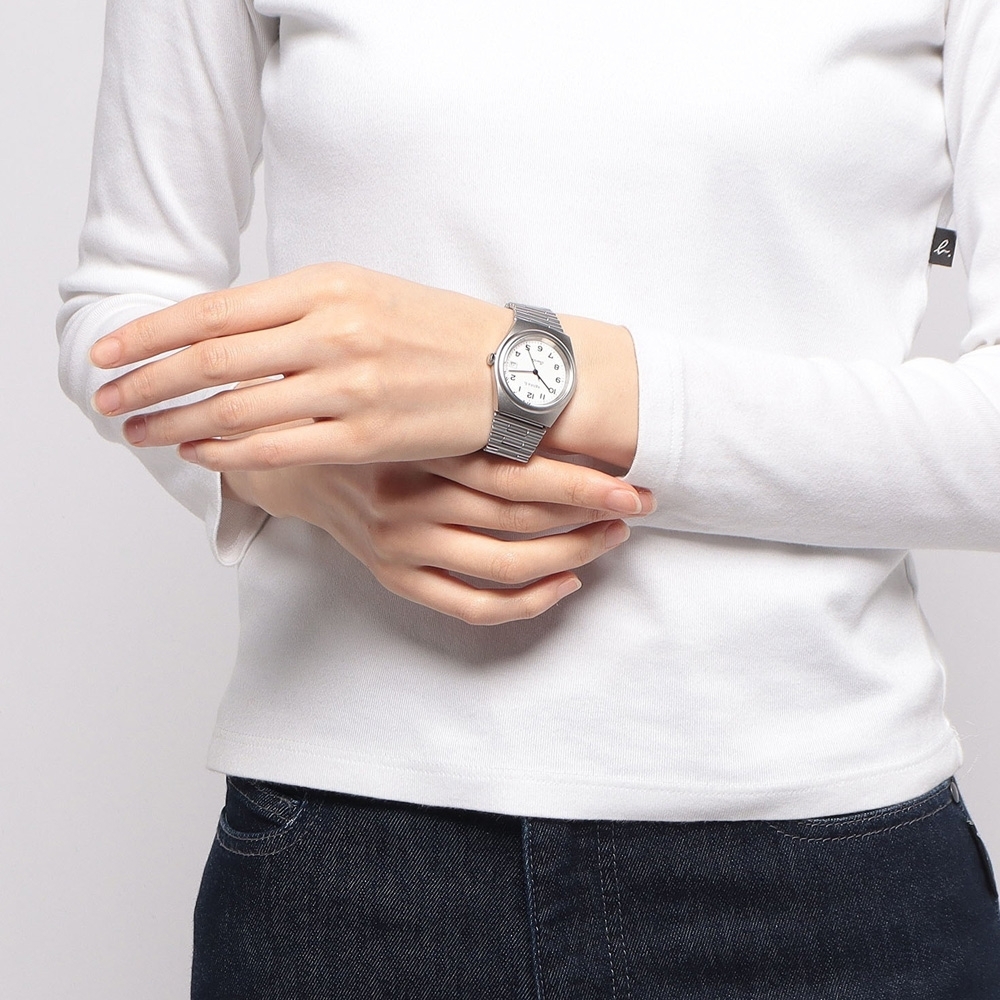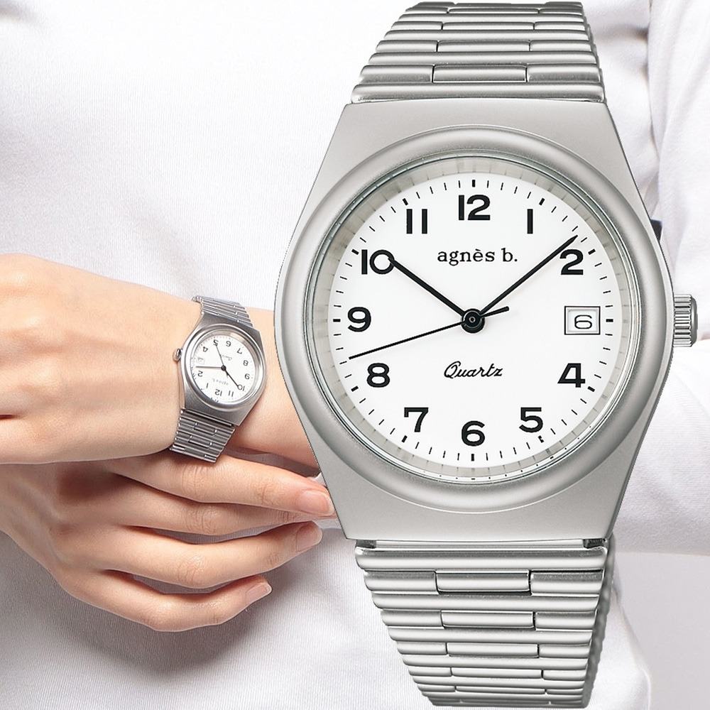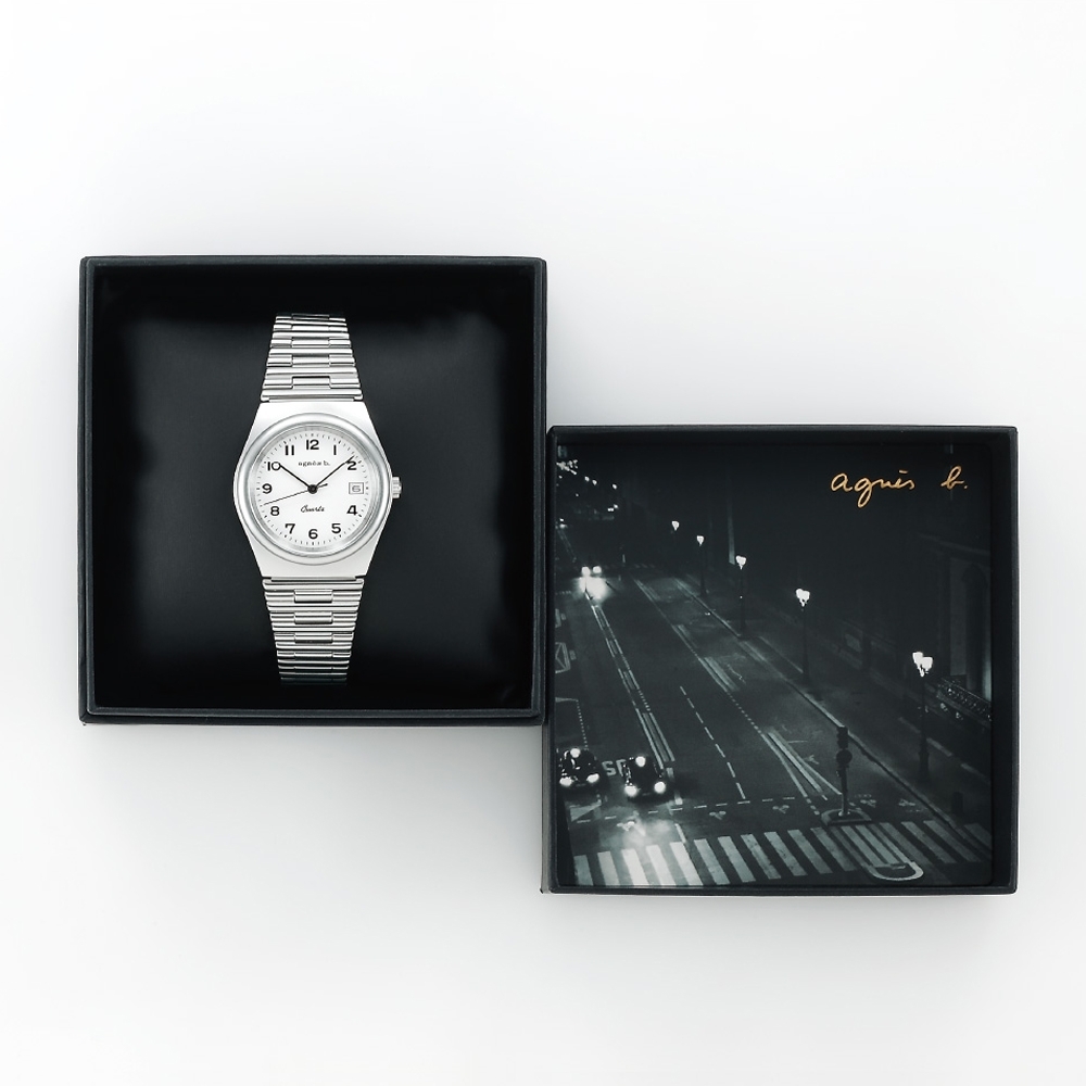 萬年鐘錶 - agnes b. 法式時尚經典復古白面款三大針不鏽鋼女錶 BG8014X1 / VJ32-KPP0S 錶徑34MM