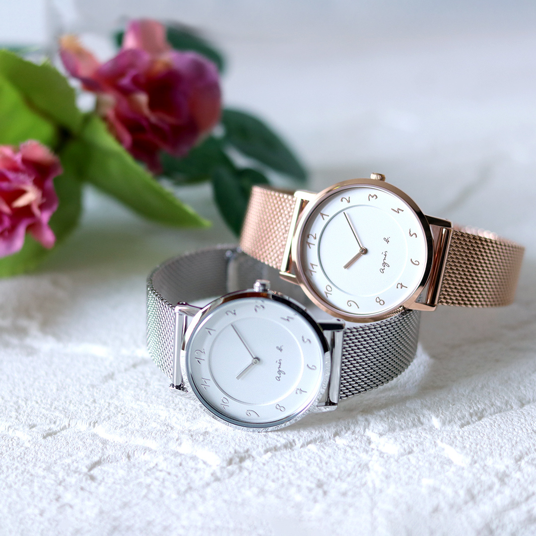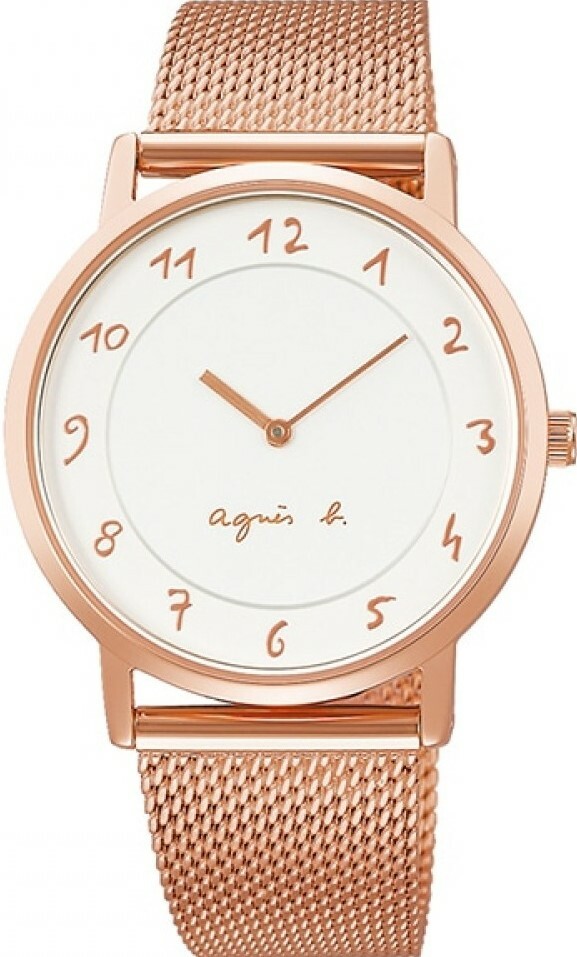 萬年鐘錶 - agnes b. 手繪 阿拉伯數字時標玫瑰金米蘭錶帶女錶 BJ5020X1 / VJ20-KYS0K 錶徑33.8MM