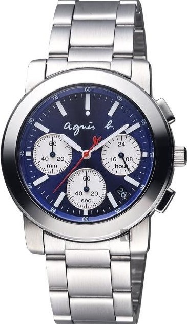萬年鐘錶 - agnes b. 藍面三眼計時男錶 V654-KP30B / BT3029X1 錶徑40MM