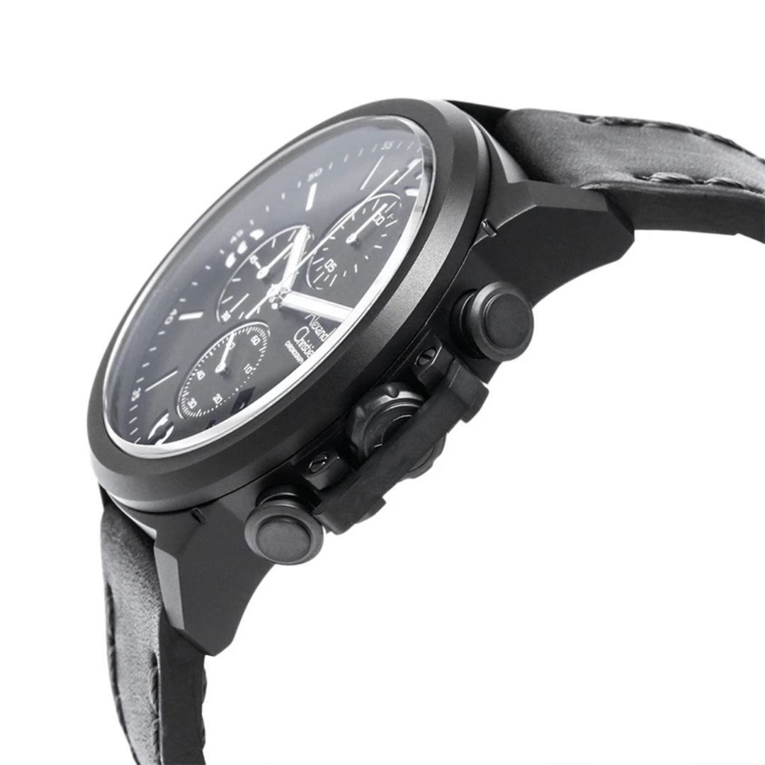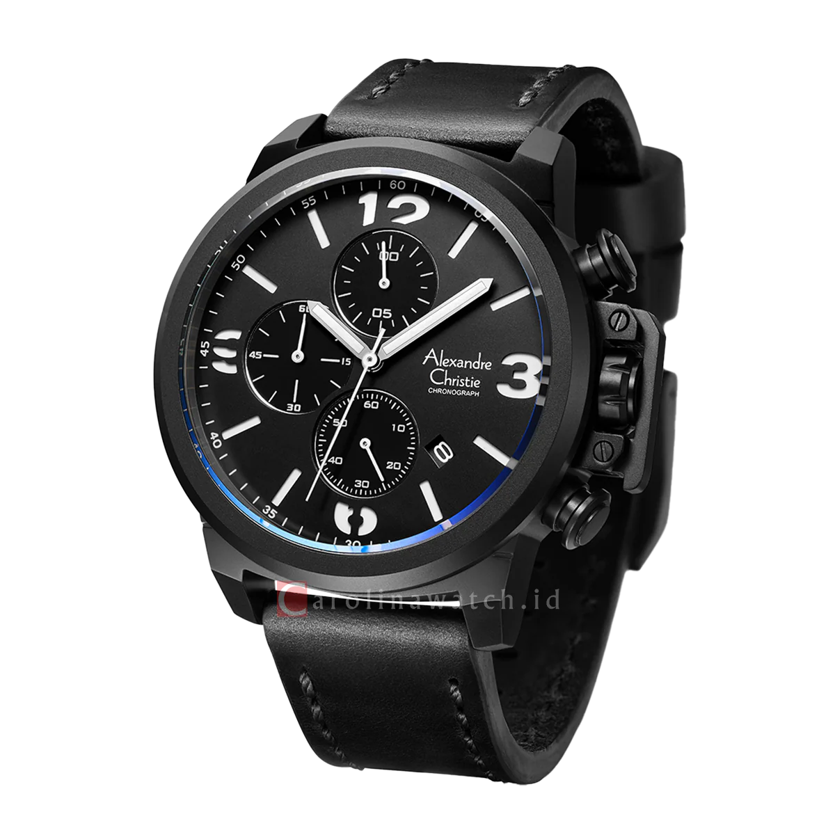 萬年鐘錶 - Alexandre Christie 6280MC系列 大數字刻度三眼計時皮革男錶 AC手錶 6280MCLIPBASL 錶徑48MM