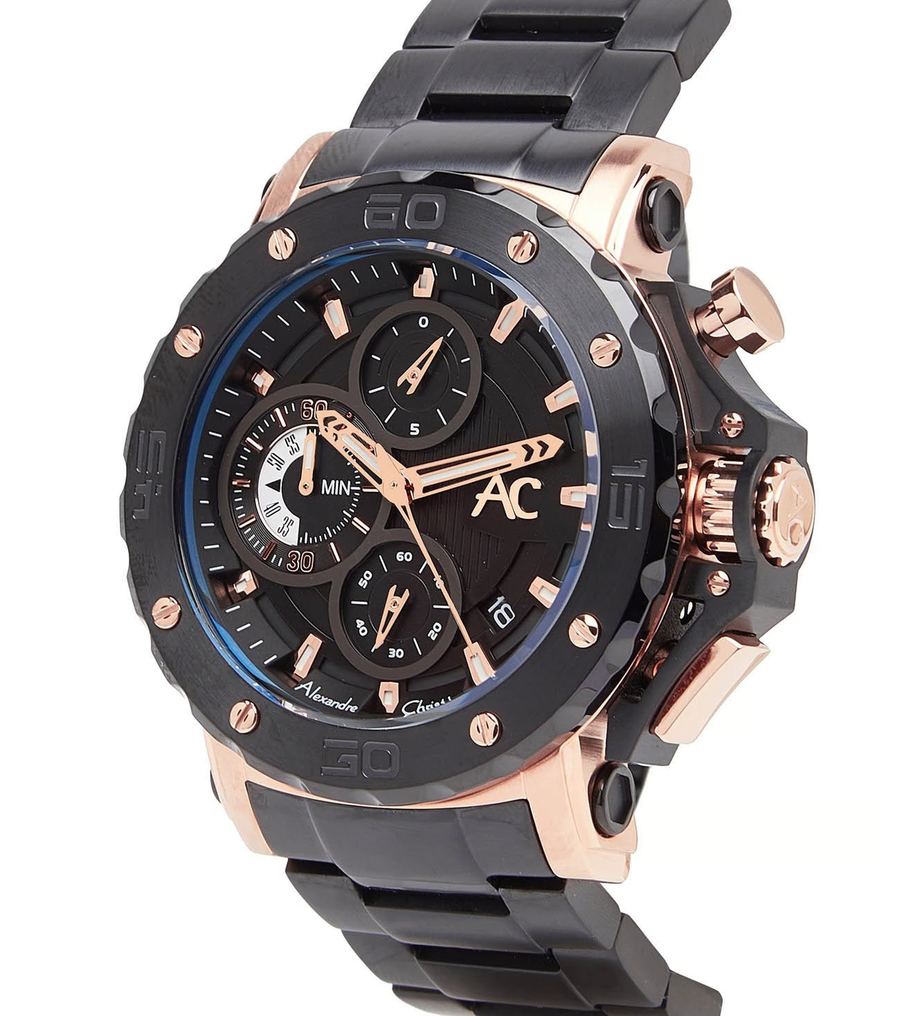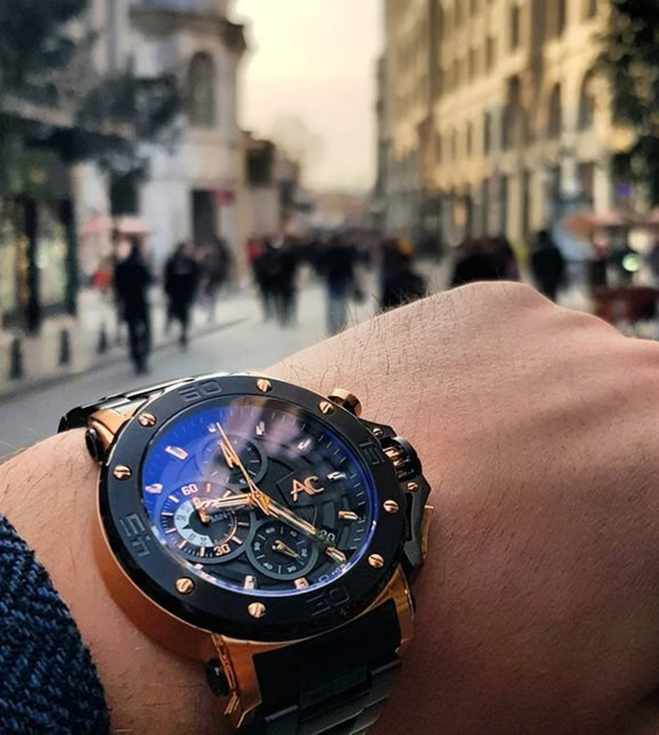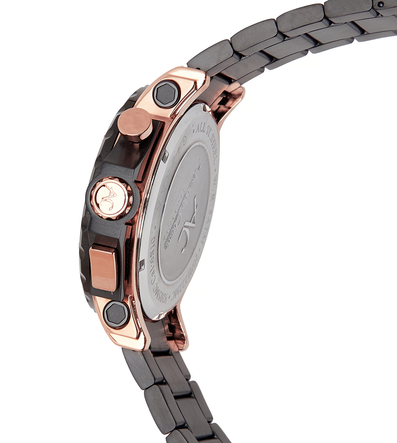 錶圈的八個外露螺絲裝飾,帶出粗獷感,讓識別度大膽提升。延續AC標誌性LOGO與細膩的滾花錶冠護橋,充滿硬派卻帶自由不羈個性的時髦單品。