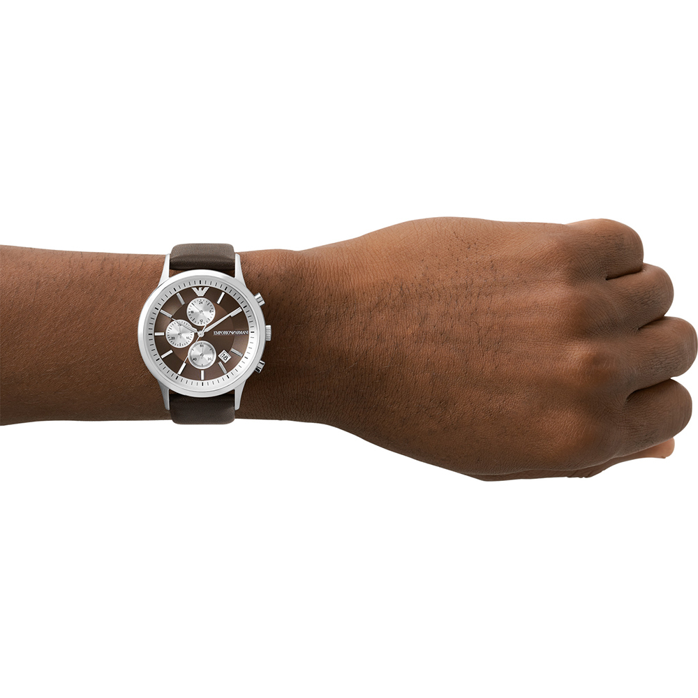 萬年鐘錶 - ARMANI 亞曼尼 精品腕錶 街頭三眼皮革男錶 AR11490 錶徑43MM