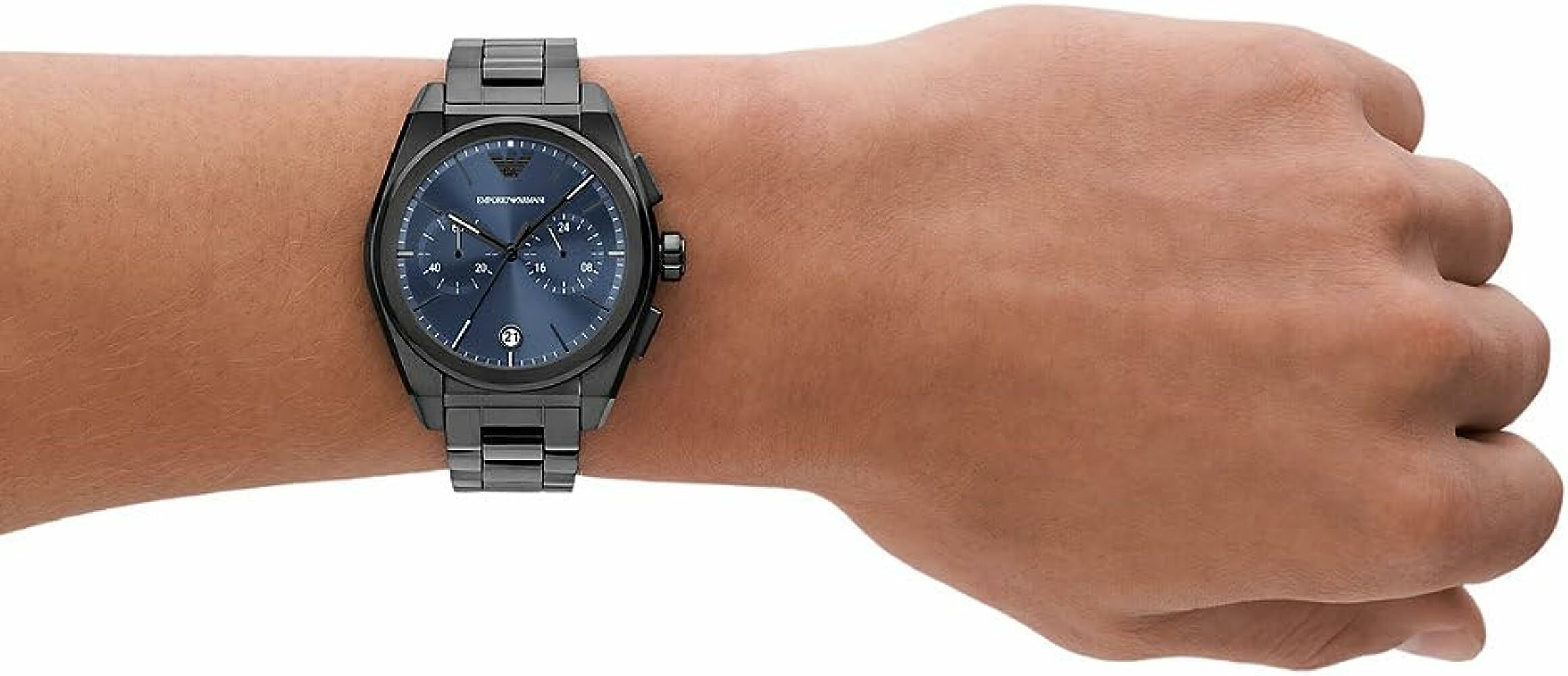 • 精品腕錶  全黑藍面經典不鏽鋼男錶 AR11561