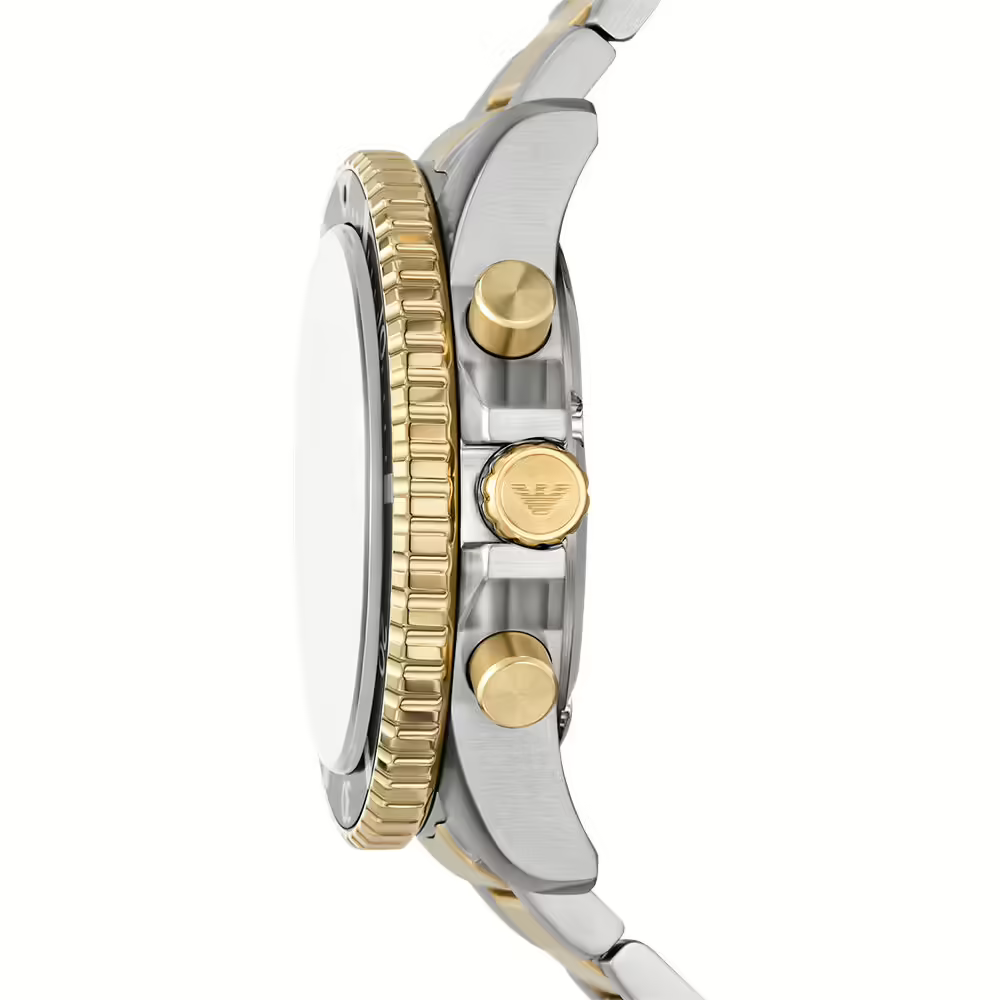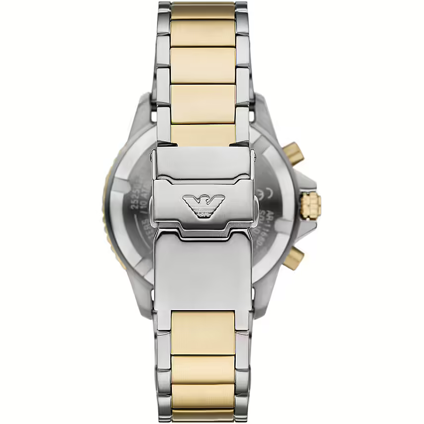 萬年鐘錶 - ARMANI 亞曼尼 精品腕錶 太陽能紳士經典綠金三眼不鏽鋼男錶 AR11695 錶徑43.5MM