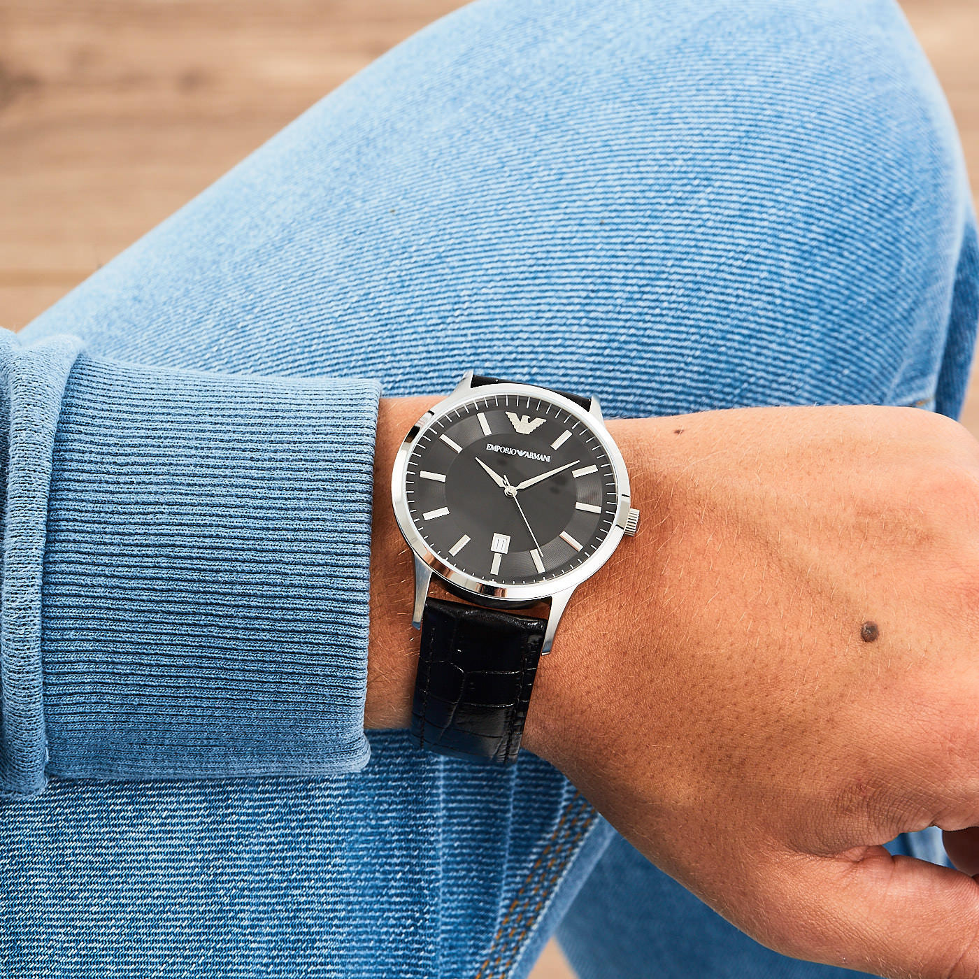 • 精品腕錶  黑色經典皮革男錶  AR2411