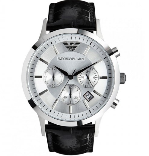 萬年鐘錶 - ARMANI 精品腕錶 三眼皮革男錶 AR2432 表徑43MM