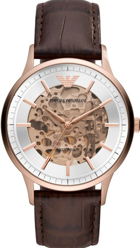 萬年鐘錶 - ARMANI 精品腕錶 經典透視錶面機械皮革男錶 AR60039 錶徑43MM
