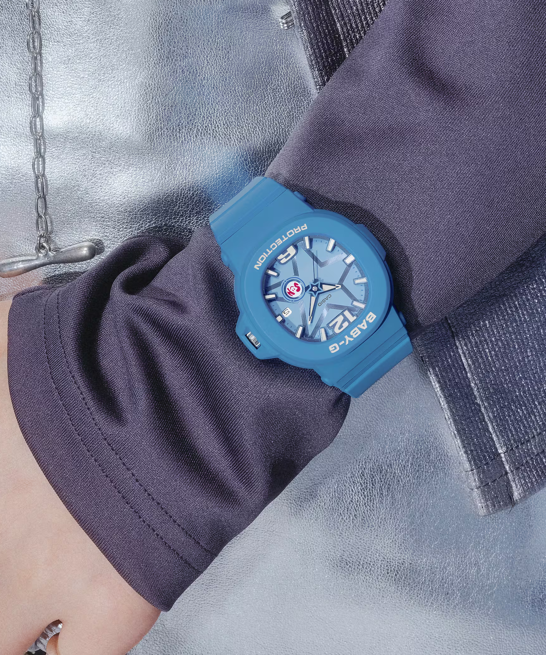 太空主題的未來風 BGD-10D 錶盤綴有星星和金屬色澤的凸起時標。就連手錶指針的底部也有星星圖案,增添一絲 BABY-G 獨有的奇趣風格。星期顯示有七種不同設計,採用充滿流行感的字型和顏色,讓您每一天的造型都歡樂有活力。
