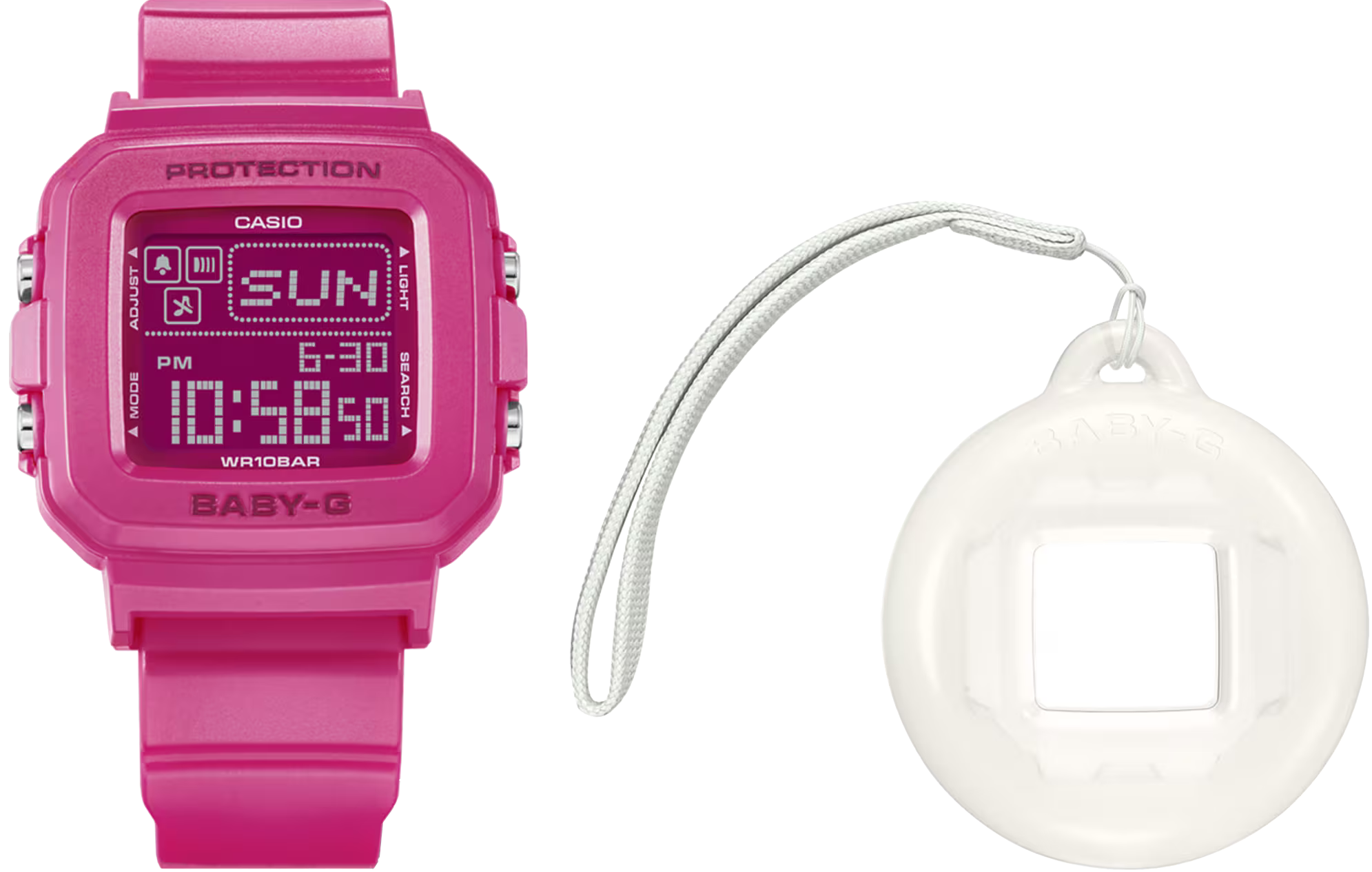 BABY-G 30 週年慶新系列 BABY-G+PLUS 隆重登場,精巧的數位手錶搭配附有掛繩的錶殼吊飾,更有毋需工具即可輕鬆拆下的錶圈與錶帶。要當作腕錶佩戴,還是當作飾品掛於腰間或包包:一切由您決定。用這支全新風格錶款為自己打造獨一無二的造型,迎接 BABY-G 30 週年慶。並且請記住:「你有你的風格。我有我的光彩。這就是 BABY-G!」