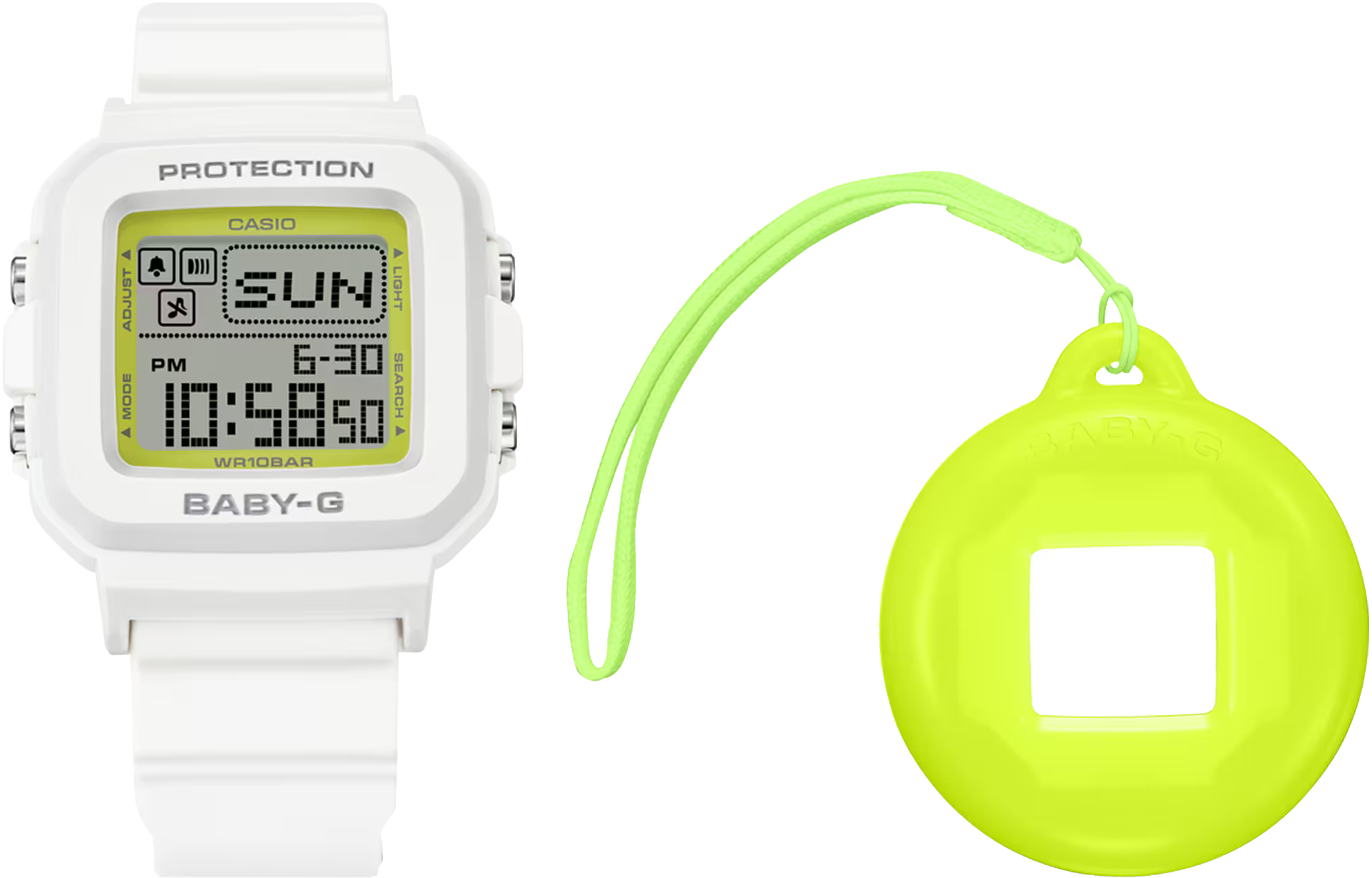 BABY-G 30 週年慶新系列 BABY-G+PLUS 隆重登場,精巧的數位手錶搭配附有掛繩的錶殼吊飾,更有毋需工具即可輕鬆拆下的錶圈與錶帶。要當作腕錶佩戴,還是當作飾品掛於腰間或包包:一切由您決定。用這支全新風格錶款為自己打造獨一無二的造型,迎接 BABY-G 30 週年慶。並且請記住:「你有你的風格。我有我的光彩。這就是 BABY-G!」