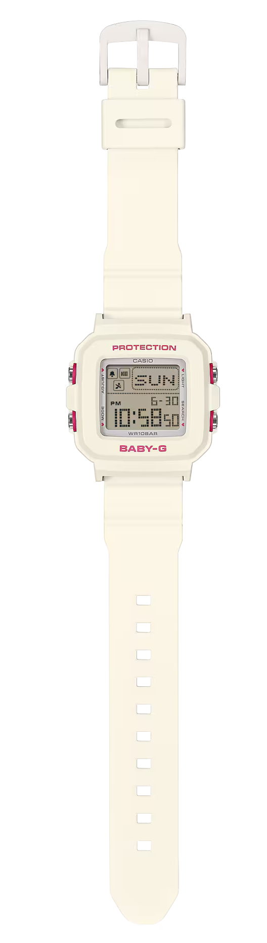 不只好玩,更具實用性。此 BABY-G+PLUS 錶款還擁有耐衝擊構造以及 100 米防水性能。