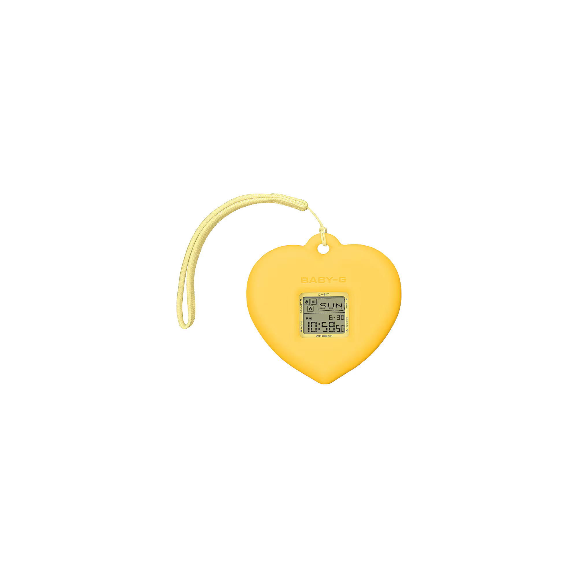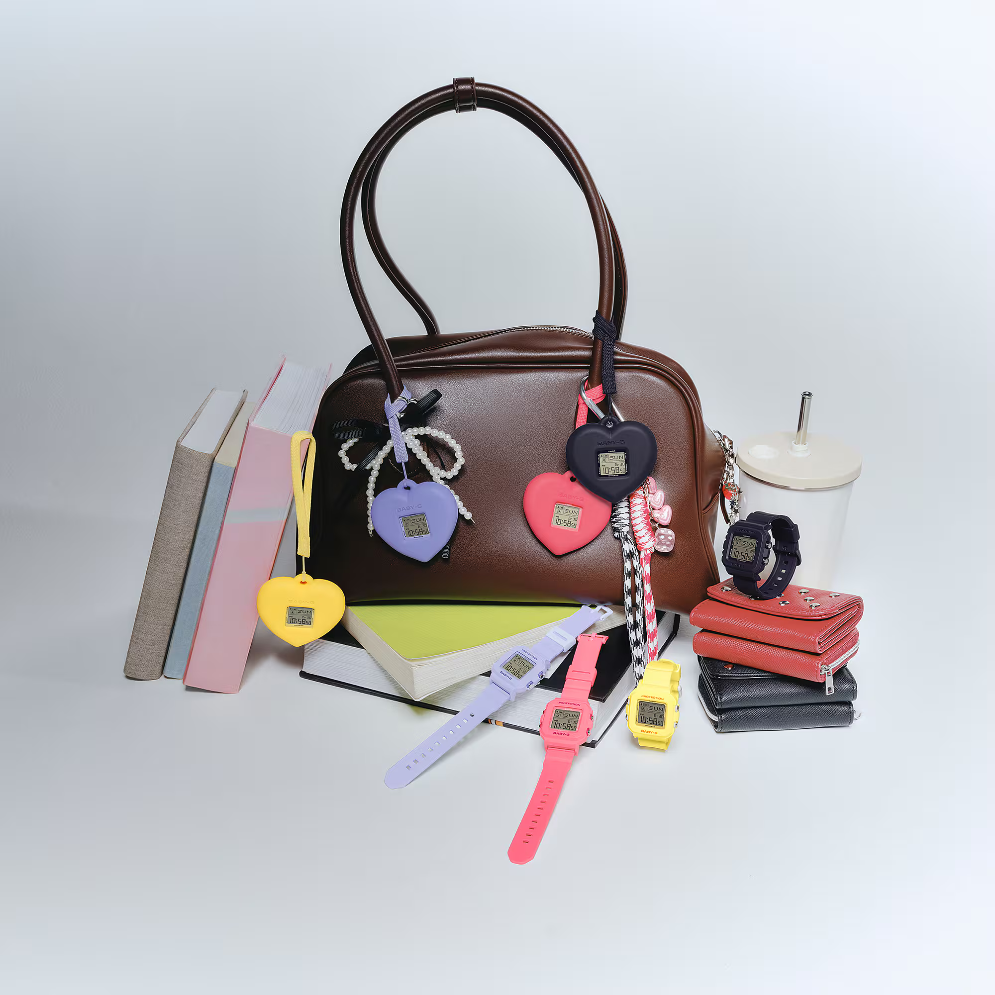 清新的粉彩色調與霧面處理,散發俏皮可愛的氛圍。您可以在矽膠手錶吊飾上貼貼紙和增添其他飾品,打造出您獨一無二的個人風格。按下按鈕後會發光,且 LCD 螢幕上會呈現可愛的心形,更添趣味。