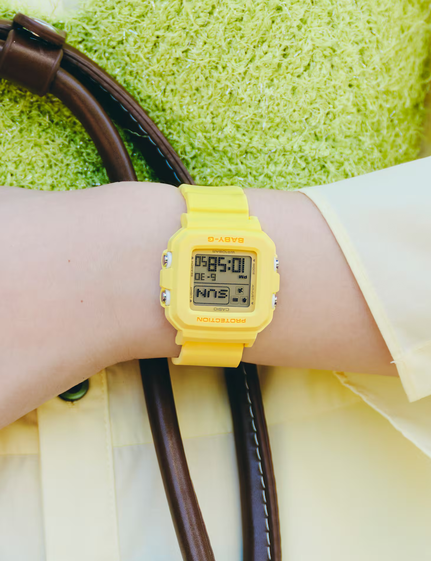 不只好玩,更具實用性。此 BABY-G+PLUS 錶款還擁有耐衝擊構造以及 100 米防水性能。