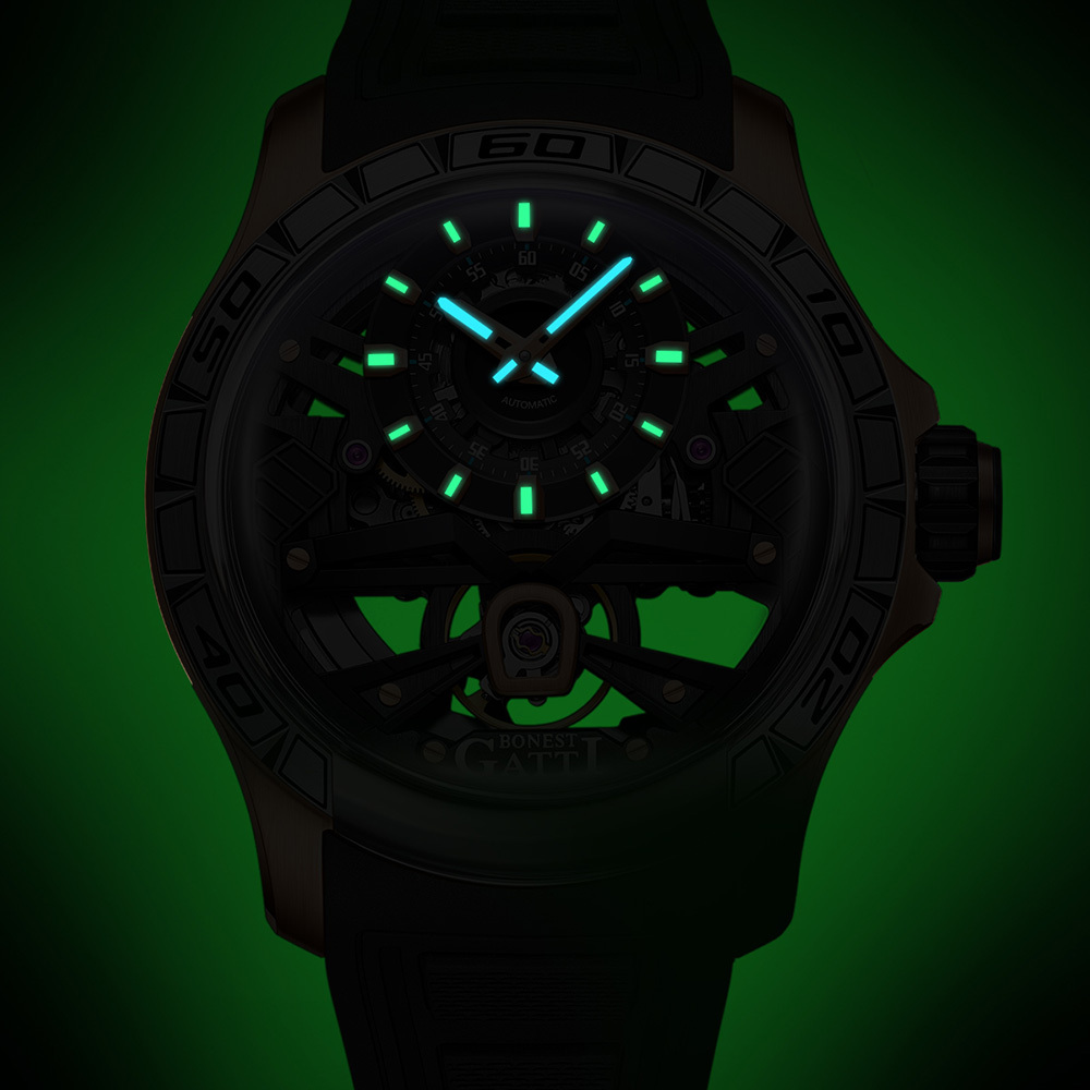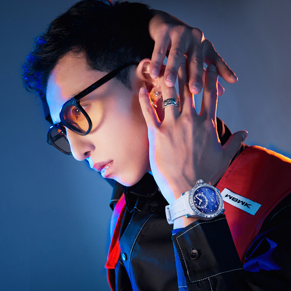 萬年鐘錶 - BONEST GATTI Watch | 布加迪 寶加地 | 宇宙系列白色銀框機械鏤空機芯男錶 BG5101-A1 錶徑 44MM