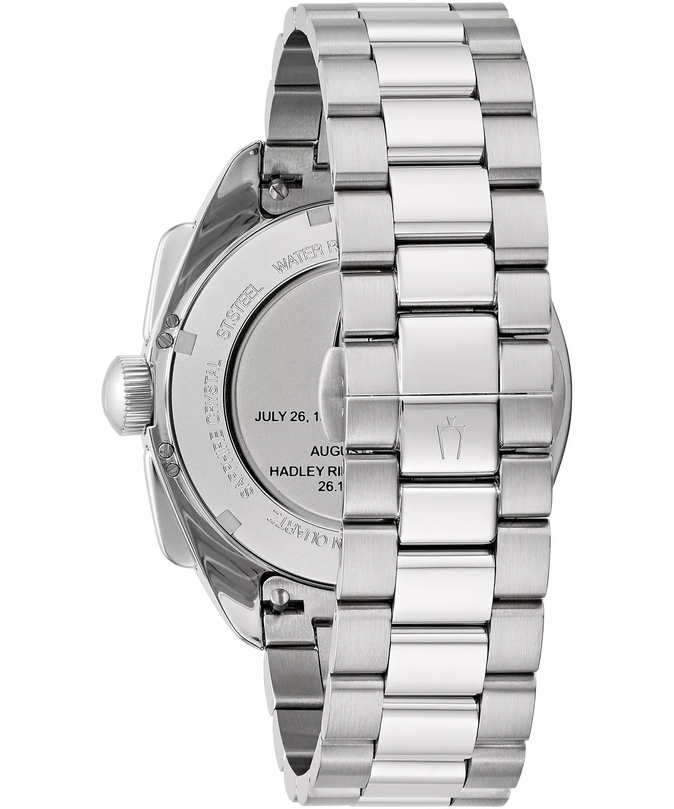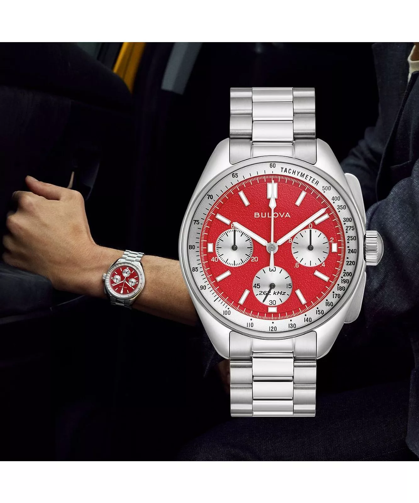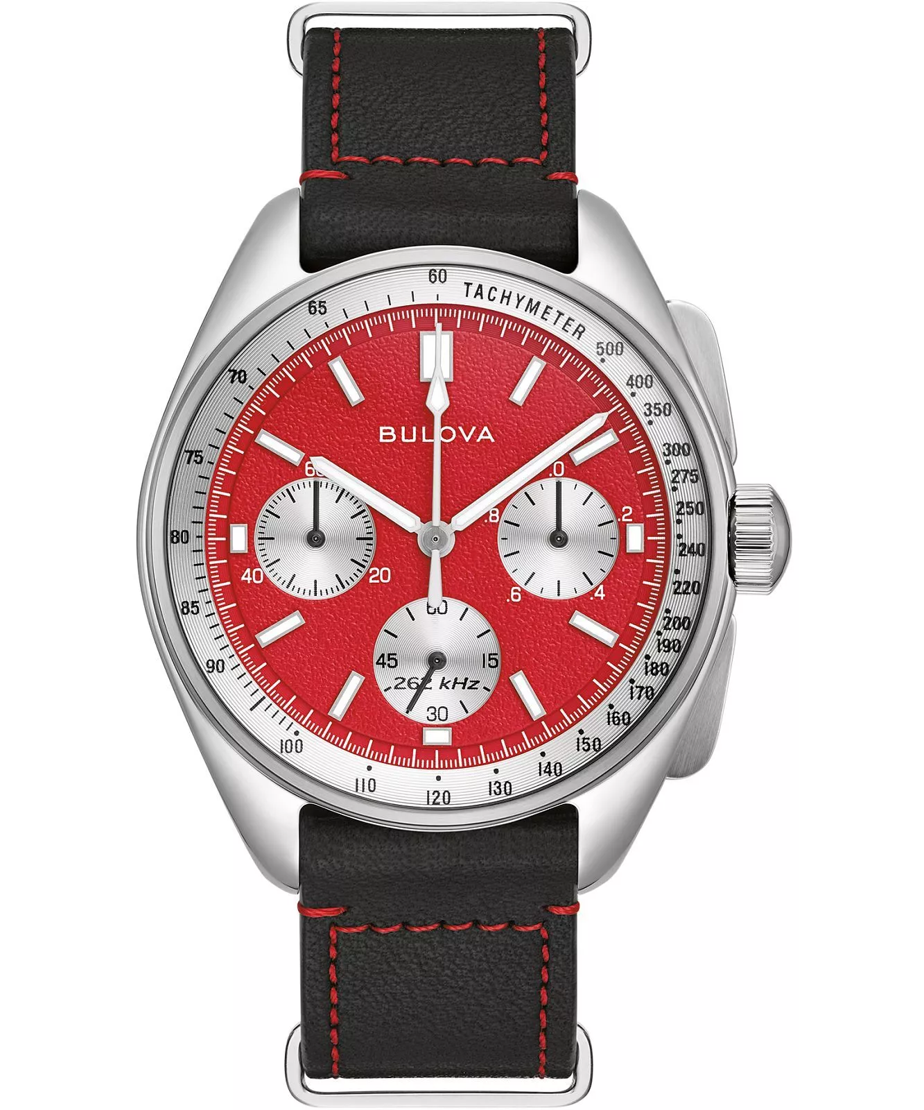 Bulova Lunar Pilot還原了當年波羅15號任務中登月錶的真實尺寸43.5mm,把經典設計重現人間。手錶機芯採用高精準度的NP20高頻石英計時碼錶機芯,手錶準確度以年計算,年誤差少於一分鐘。全新43mm版本登月錶分別有藍白色及黑色兩個選擇。除了原裝不鏽鋼三珠鋼帶外,隨錶附上一條20MM皮革NATO錶帶。