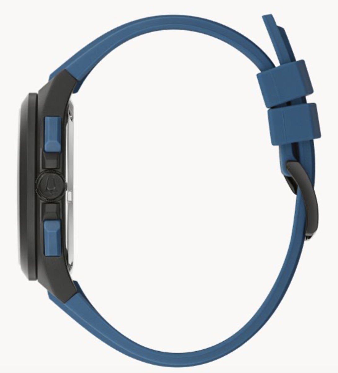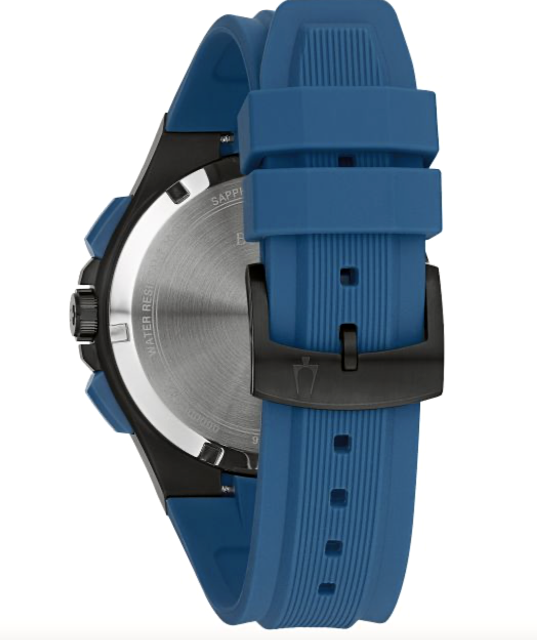 萬年鐘錶 - BULOVA 寶路華 啞光藍運動休閒三眼計時男錶 98B380 錶徑 46MM