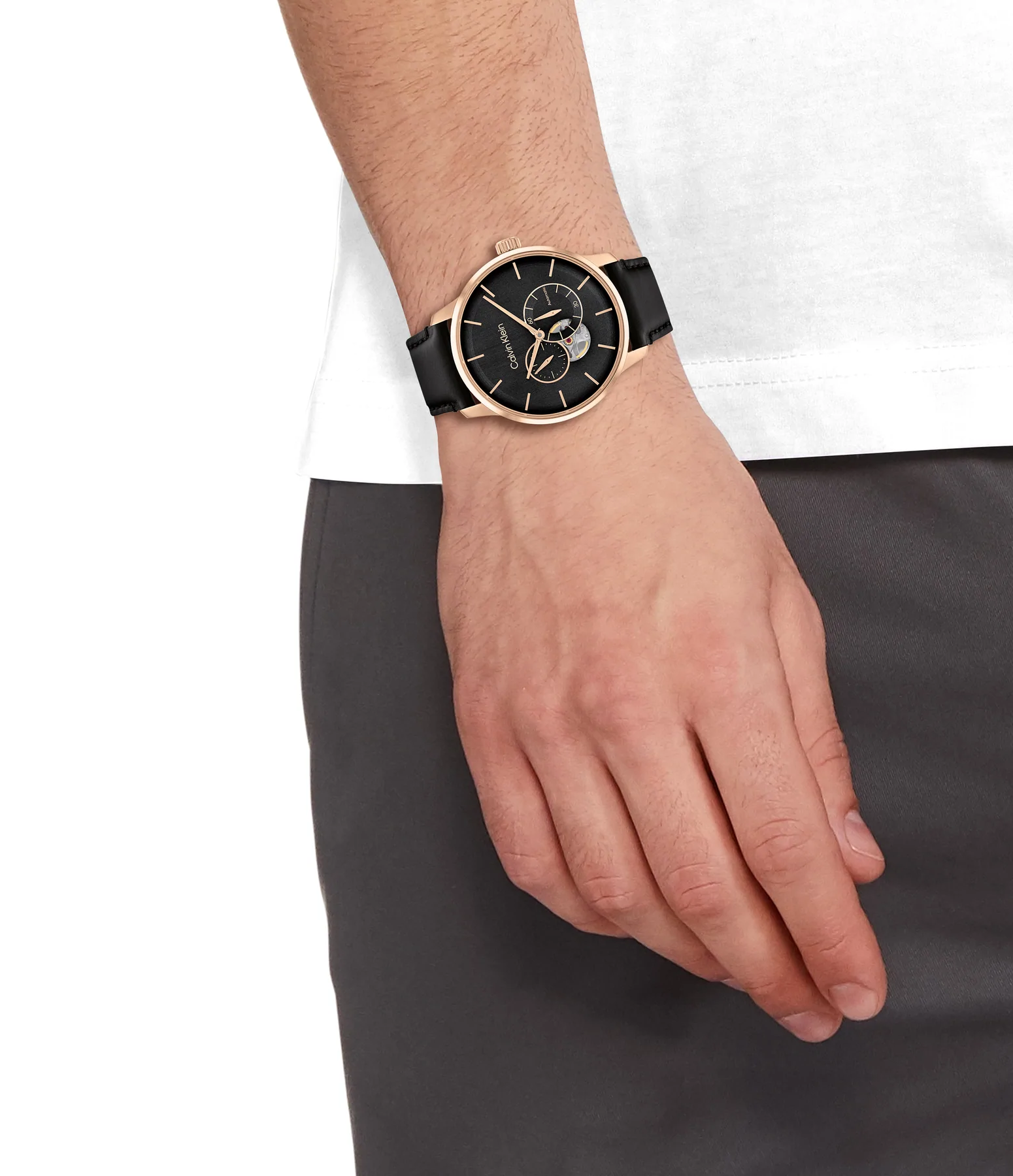 萬年鐘錶 - Calvin Klein CK 經典簡約機械皮革男錶 25200074 錶徑41.2MM