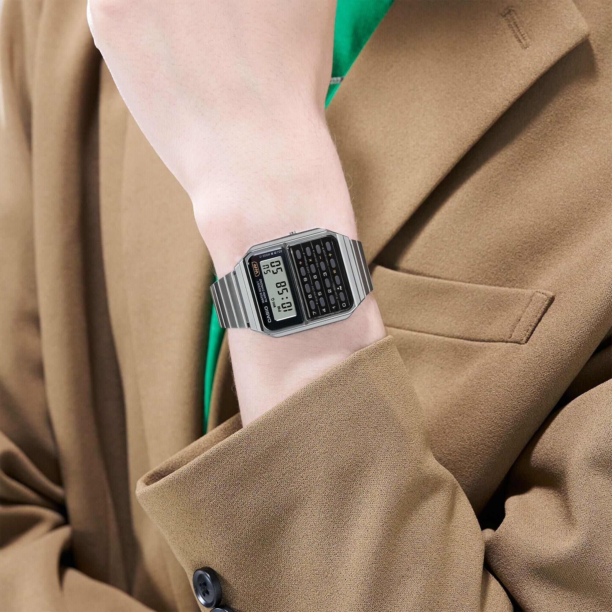 自1980年代首度問世後,這款Casio計算機錶款一直是熱門經典之作,如今將以高質感的金屬風格重新亮相。保有原始款式的酷炫計算機功能,搭配長方形錶殼和金屬錶帶,打造出純正的復古造型。