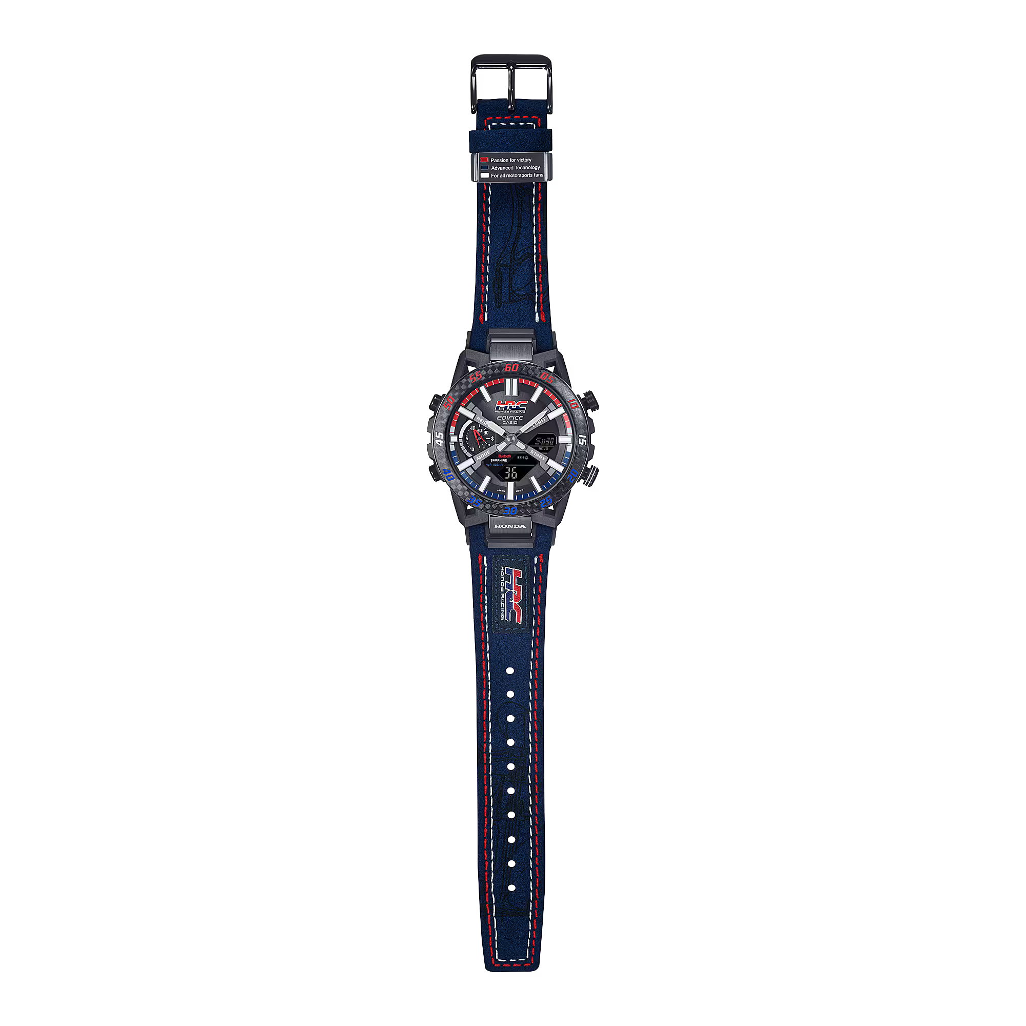 這款紅、藍、白高性能 EDIFICE 充分體現賽道上的速度與智慧,盡情擁抱 HRC(本田賽車公司)精神的熱情。
