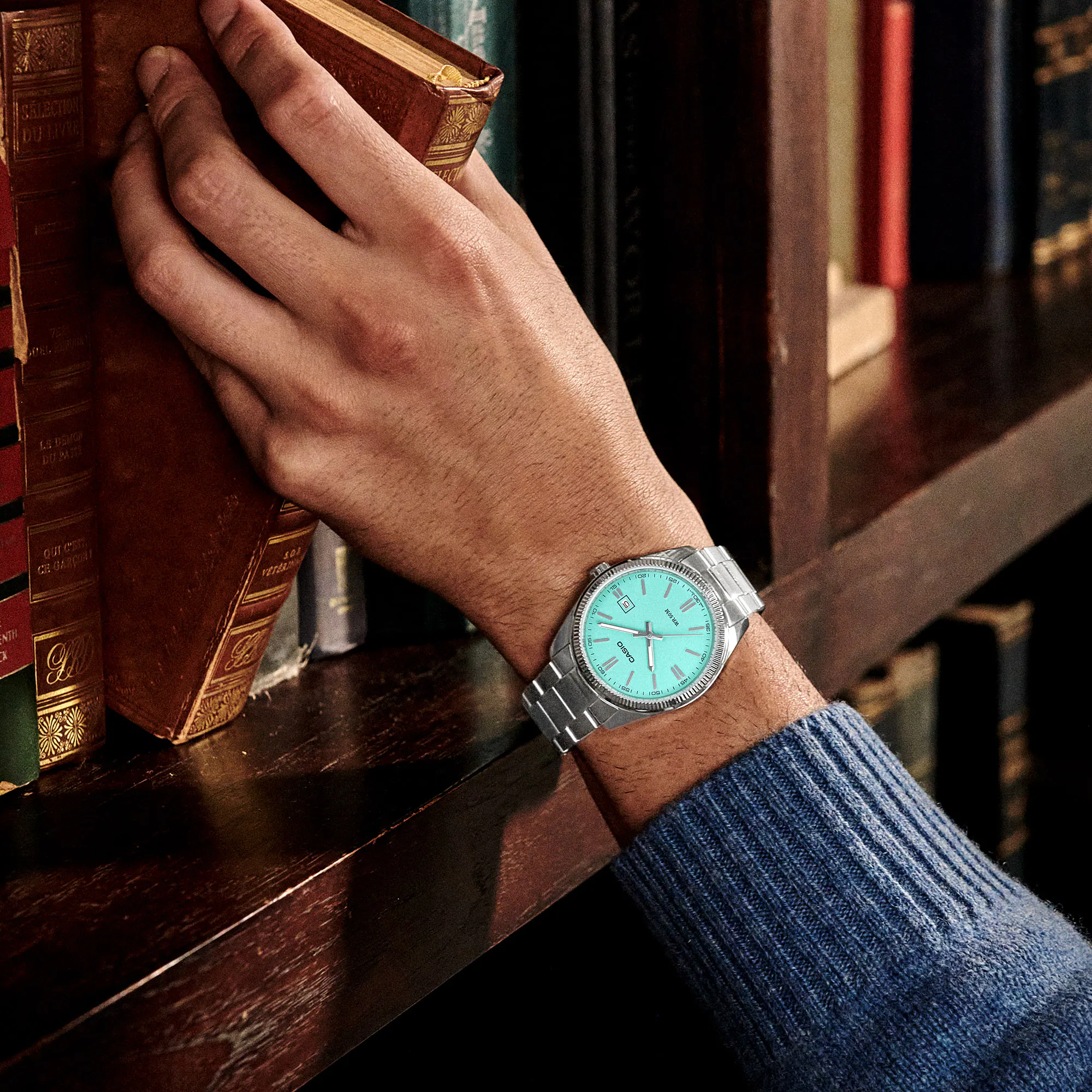 經典指針手錶,採用全藍或全綠色錶盤,增添大膽色彩。