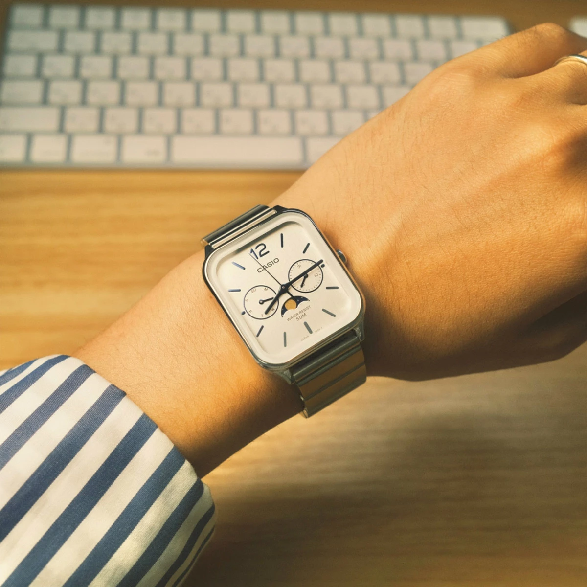 月相功能 — 透過配以多個內嵌錶盤的奪目指針錶面追蹤月相。這些錶款結合時尚外型及經典月相設計。任您選擇,無論您是上班或休閒時刻,都能讓您緊貼日程。防水性能達 50 米,讓您在洗漱或接觸雨水時亦倍感安心。