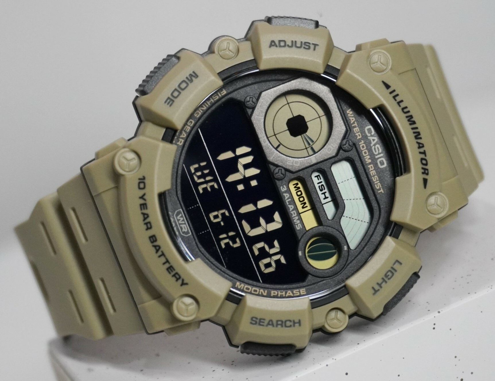 大膽風格的多功能數位錶款,搭配大尺寸易讀設計,同時滿足美觀和實用需求。更配備10年電池壽命、最深100米的防水功能、LED燈照明,以及第二時間顯示,能隨時因應所有使用需求。月相資訊和釣魚等級指示器,是您從事水上活動時的最佳夥伴。