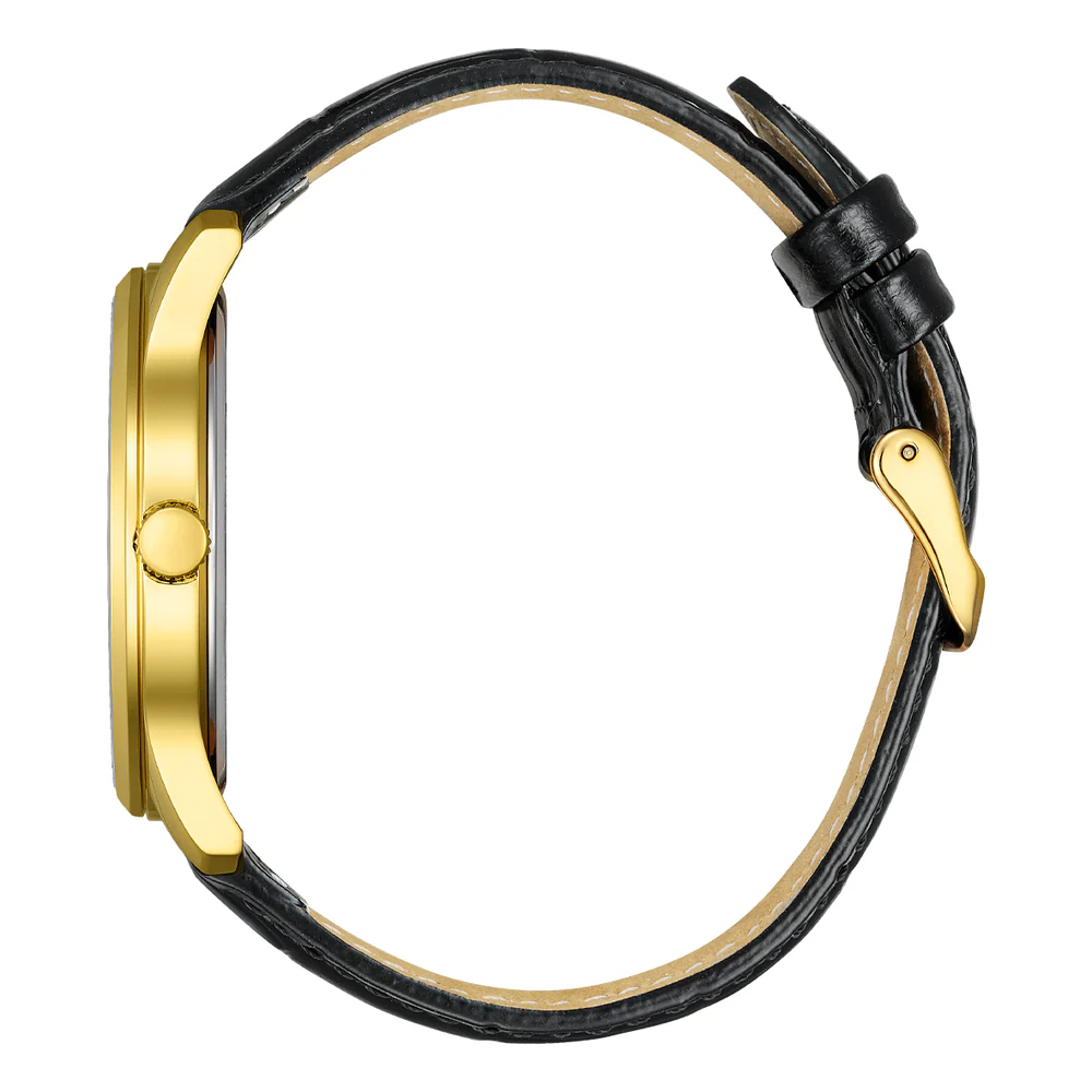 • 石英機芯  簡約大三針黑面金框石英皮革款男錶 BH5002-02E