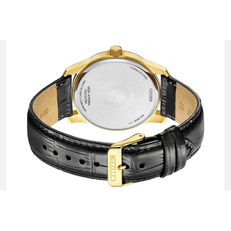萬年鐘錶 - Citizen 星辰錶 石英機芯 簡約大三針黑面金框石英皮革款男錶 BH5002-02E 錶徑42MM