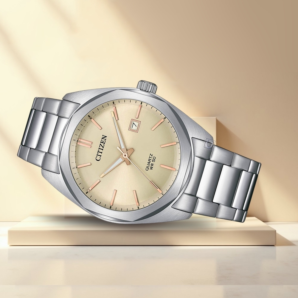 萬年鐘錶 - Citizen 星辰錶 石英機芯 紳士款米色面盤石英不鏽鋼男錶 BI5110-54B 錶徑41MM