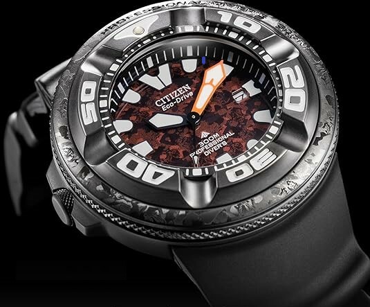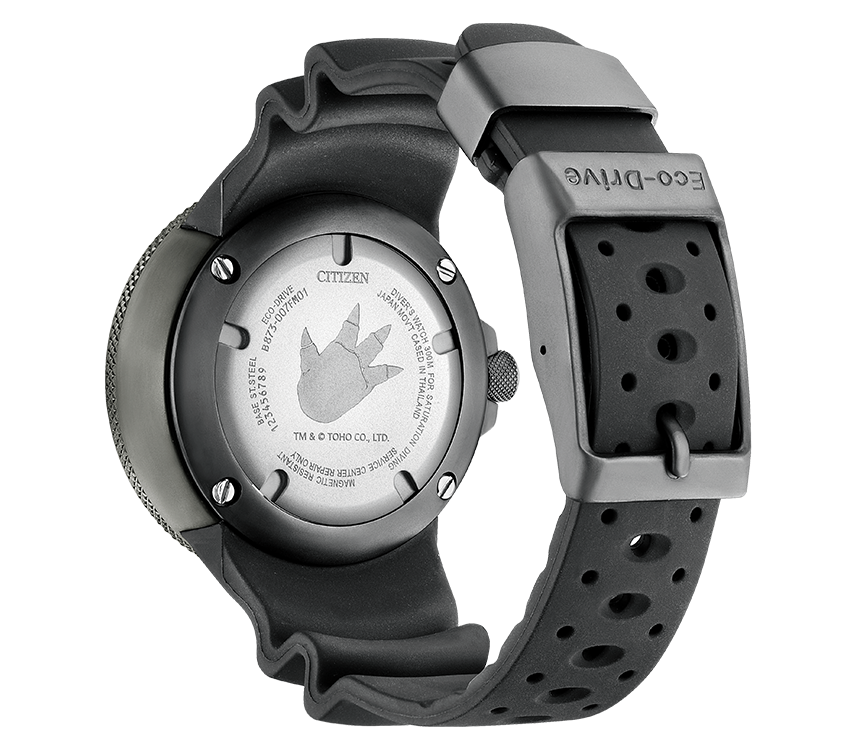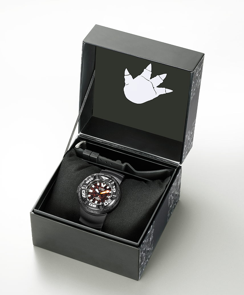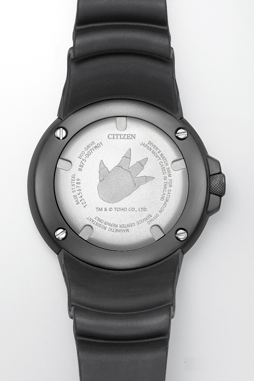 錶盤印有參考自哥斯拉皮膚紋理鱗片的迷彩圖案,當中更隱藏著小哥斯拉的圖案。