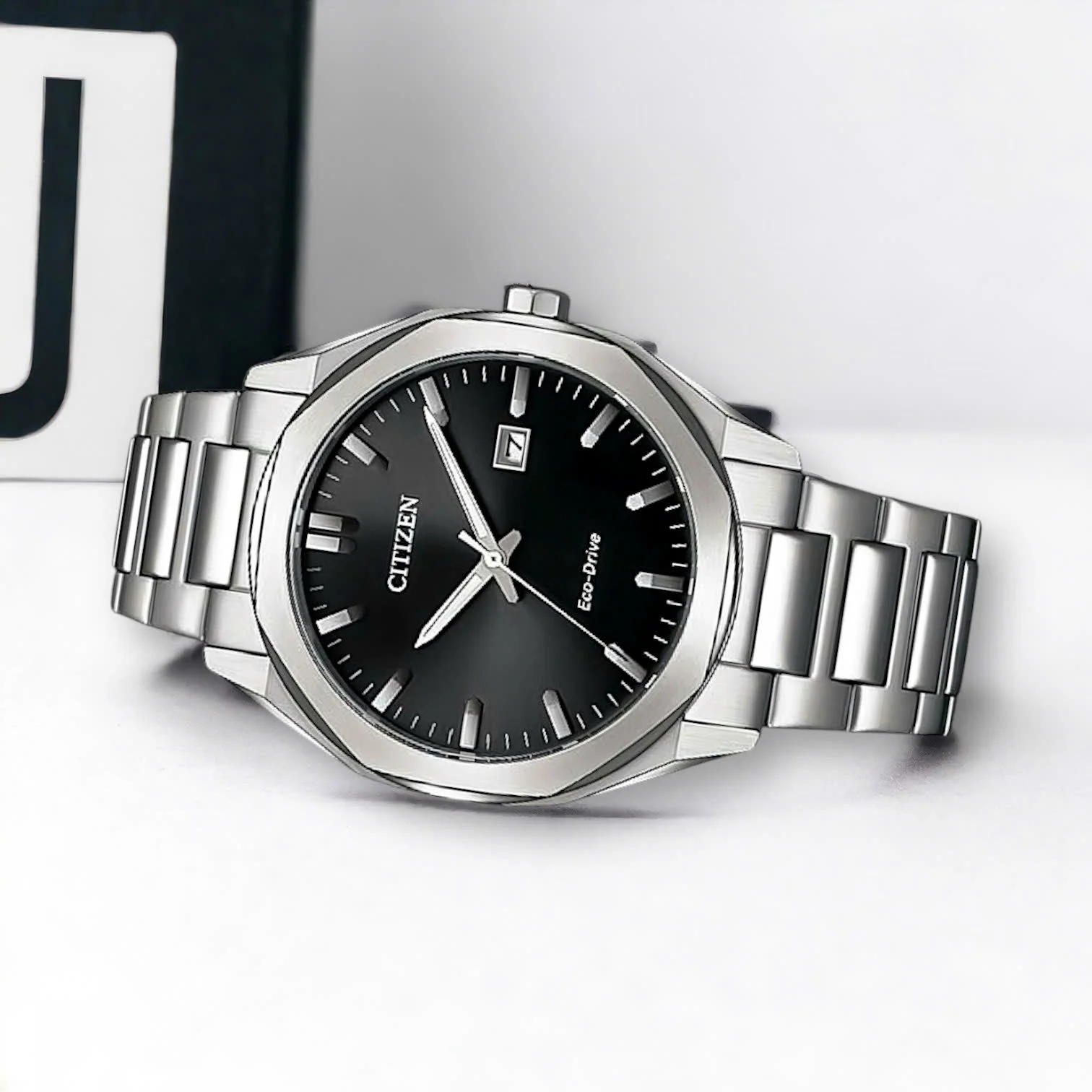 • 光動能腕錶 八角錶殼經典黑面不鏽鋼男錶 BM7600-81E