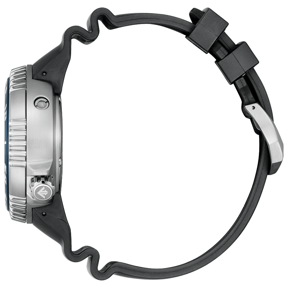 深藍色錶盤與銀色精鋼錶殼完美搭配,防反光藍寶石玻璃鏡確保您的腕錶即使在極端環境下也能始終清晰易讀。堅固耐用的錶殼經ISO6425認證,防水深度達300M,更增強了與這款腕錶的連結。