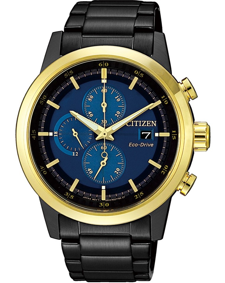 萬年鐘錶 - Citizen 星辰錶 光動能男錶 全黑金框藍面 計時碼表腕錶 CA0614-51L 錶徑43MM
