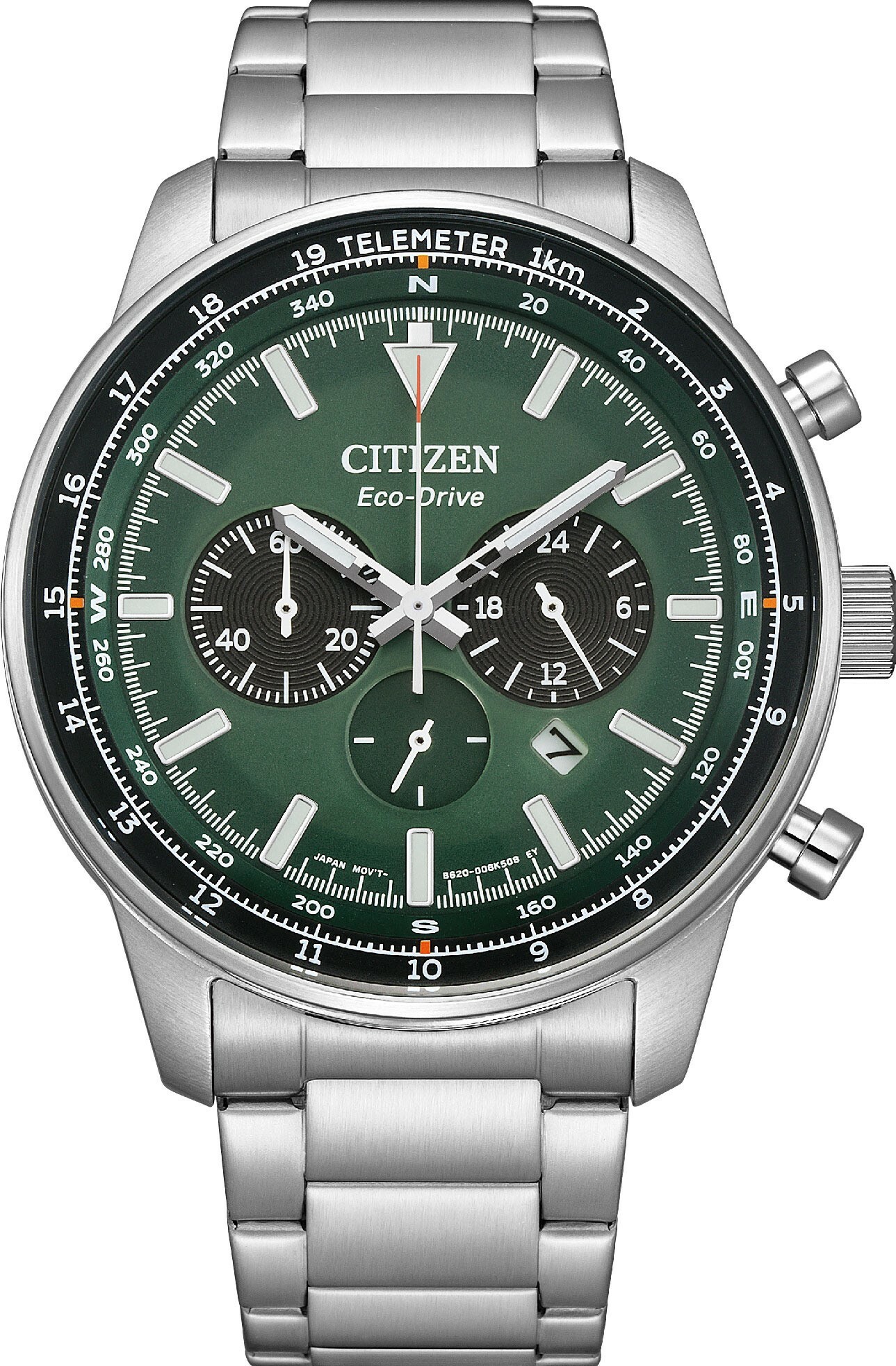 萬年鐘錶 - Citizen 星辰錶 綠面不鏽鋼光動能男錶 CA4500-91X 錶徑44MM