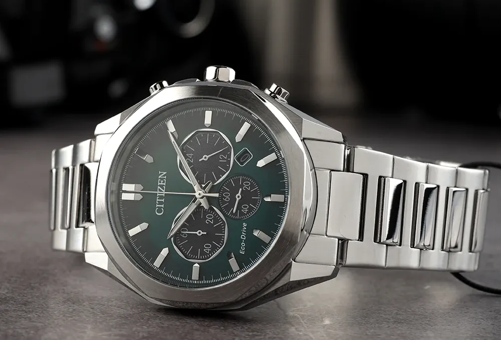 • 光動能腕錶  綠色錶面三眼光動能紳士不鏽鋼款男錶  CA4590-81X