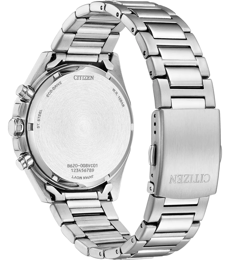 萬年鐘錶 - Citizen 星辰錶 綠色錶面三眼光動能紳士不鏽鋼款男錶 CA4590-81X 錶徑41MM