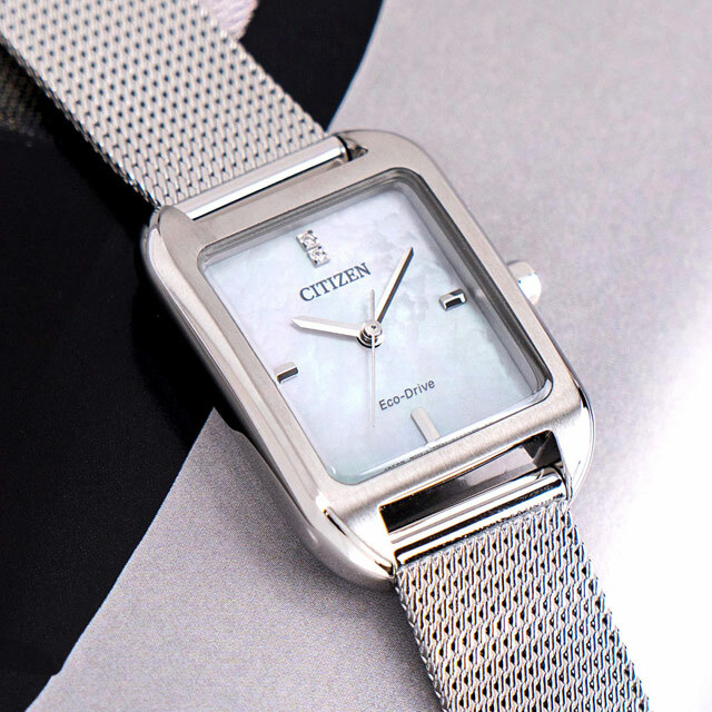 萬年鐘錶 - Citizen 星辰錶 方形米蘭錶帶光動能女錶 EM0491-81D 錶徑24MM