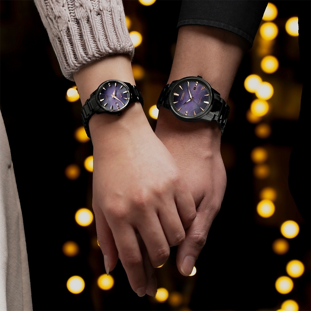 • 光動能女腕錶 全黑款紫夜星河光動能女錶 EW2595-81X